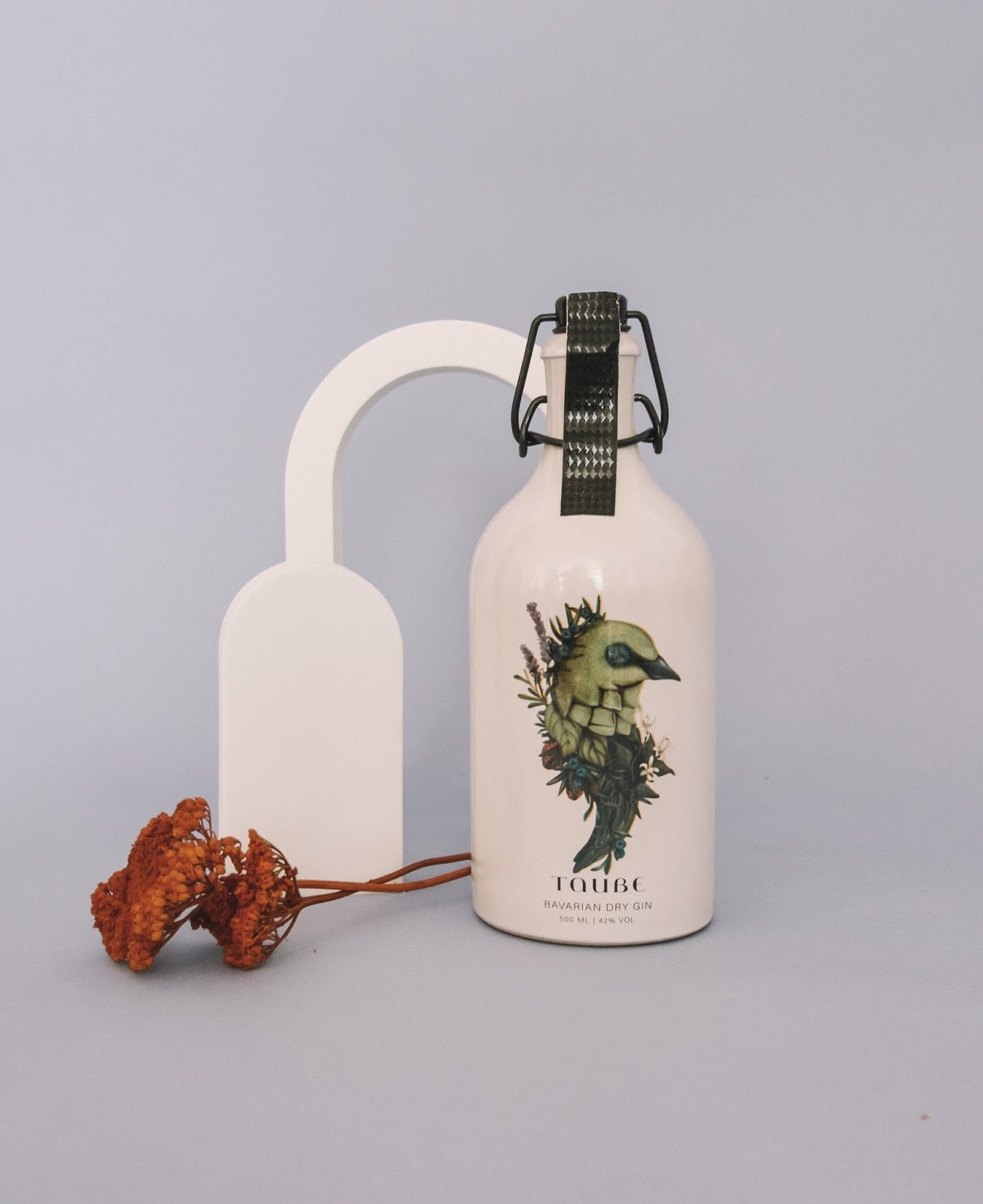Taube is bottled up in a ceramic off-white bottle, unusual for this kind of a drink. Taube is meant to stand out, attract the consumer over other typical options. It is meant to give out the crafted and hand-made but high-class vibration in seconds.