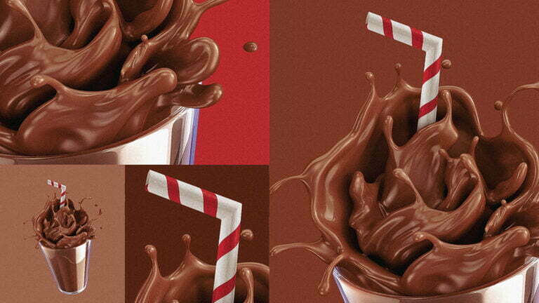 One of the pillars of the brand is to show energy, energy for day-to-day activities, especially for young people and children. And that’s why the visual language has rays that skip the image of the glass exploding with ready-to-drink chocolate.
