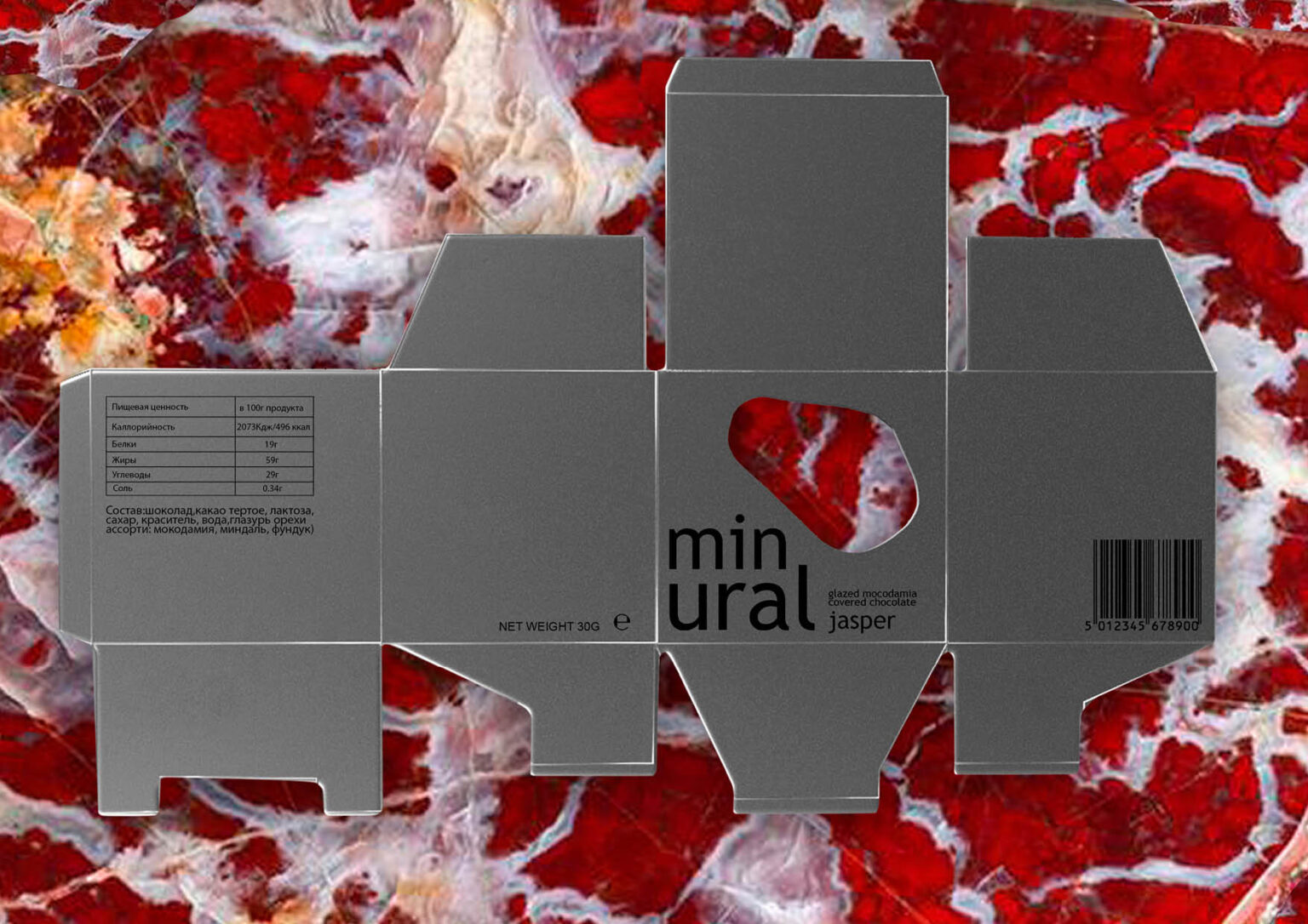 The main concept is based on the antithesis between the natural and historical beautiful world of the Urals and its modern industrial side, which is why metal is used in the outer packaging. The packaging itself uses an idea from the Ural folklore: a malachite box, a place where all the unique treasures of the region are stored