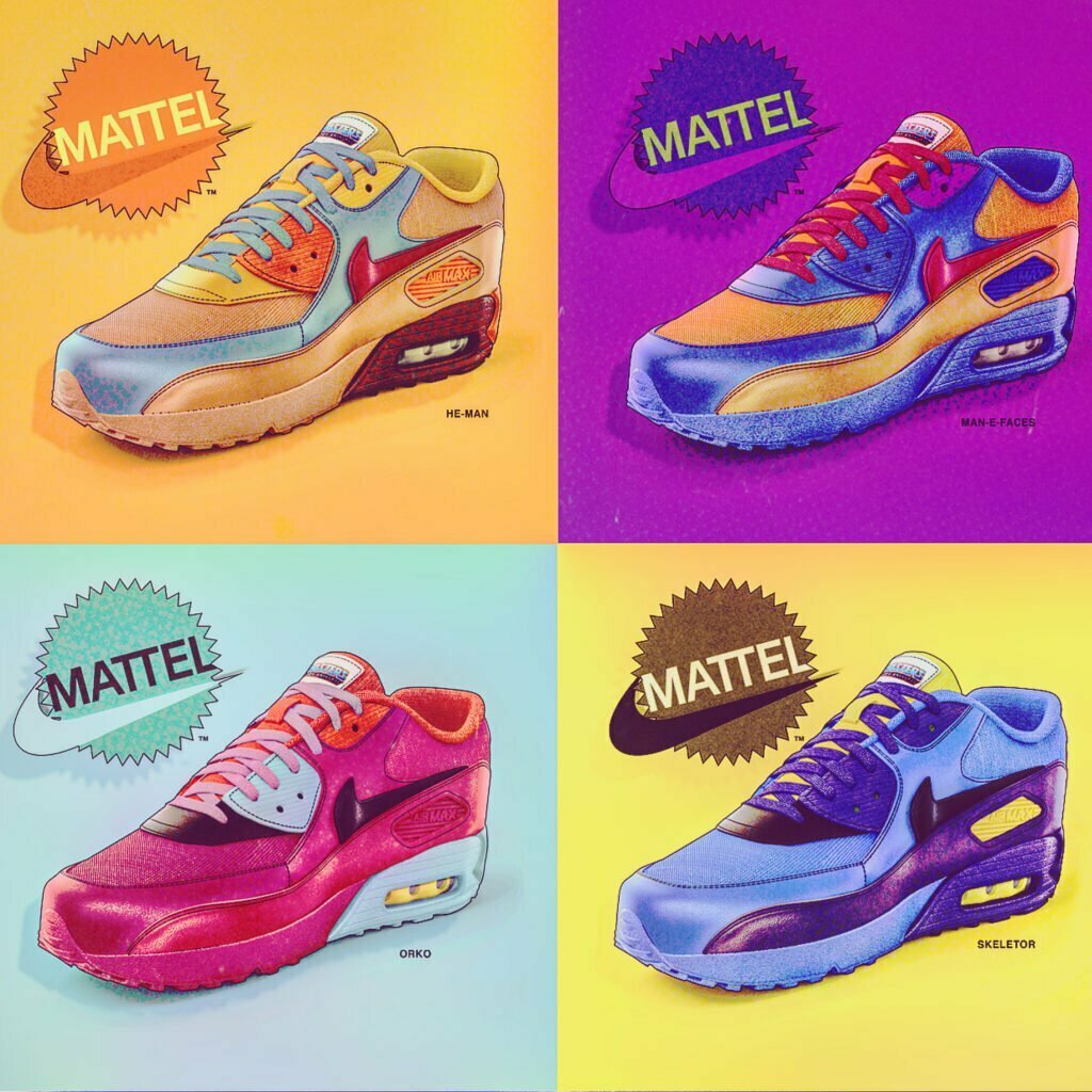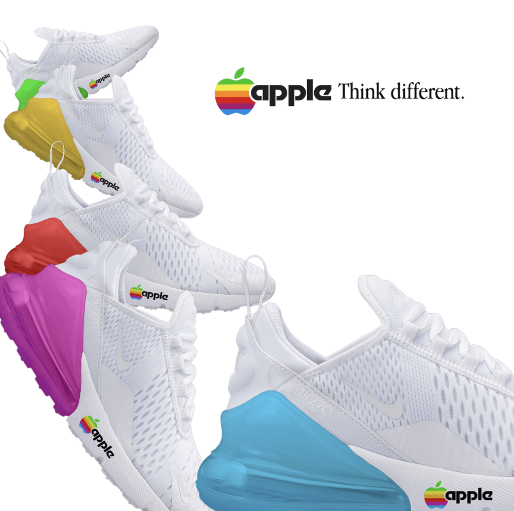 Nike Air concept sneakers, these were created over a year ago and removed from the DIELINE so far Nike have created a Nike Mattel UNO collab lets hope they also take inspo and create the MAsters of the Universe collectiona dn carebears. Specifically the Nike AIr Max sneaker is perfect fro these kinds of collabs. The apple G3 computer with the bubble heal will take you back to 1998 with compfort