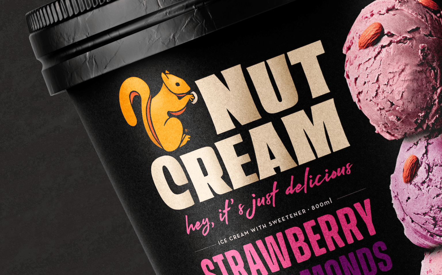 Our job consisted in creating a brand and its packaging for an ice cream-based product that looked natural since it has the walnut as the main ingredient but at the same time it is exclusive and modern. The isotype is a squirrel with warm colors that contrast with the black background of the brand.