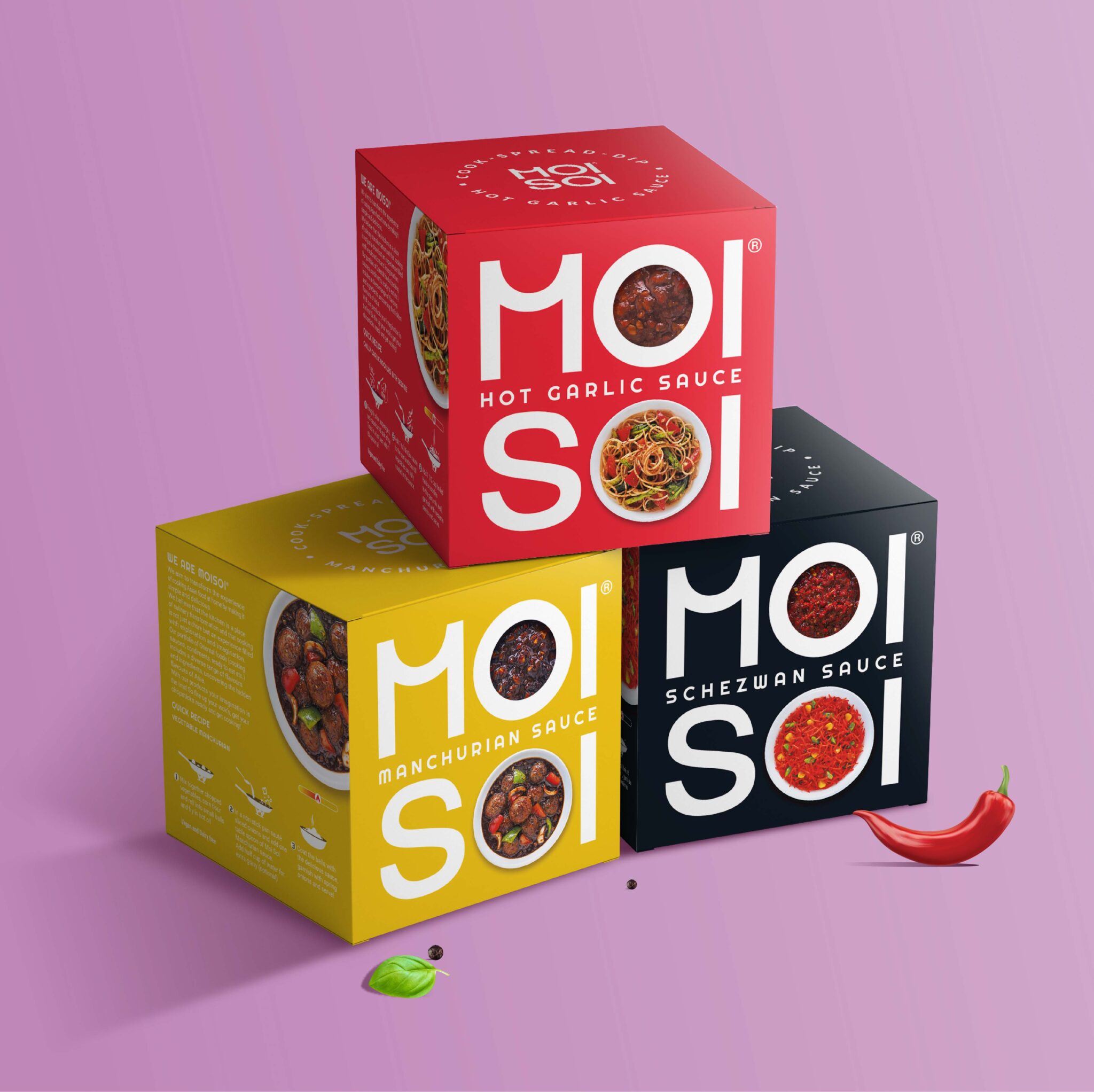 Moisoi breaks the clutter in the category through its minimal and graphic style. Whereas most of the brands show an abundance of food and heavy Asian symbols and patterns. So, fire up your wok’s, get your chopsticks ready, and get cooking!