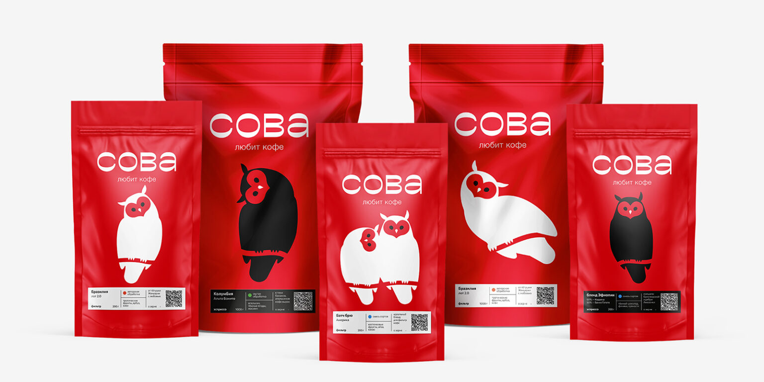 The official brand name is OWL COFFEE. However, in real life, clients and colleagues called it just “Owl”, “Owls”, and “Coffee Owl”. Following the rebranding, the official and real names turned into one: SOVA, “owl” in Russian.