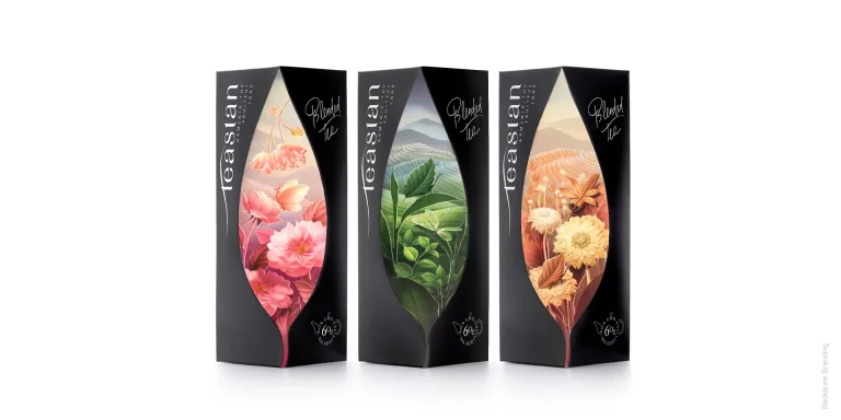 The challenge in creating this packaging design was visually expressing the associations and feelings, aromatic notes, and effect the tea passes while drinking it.
