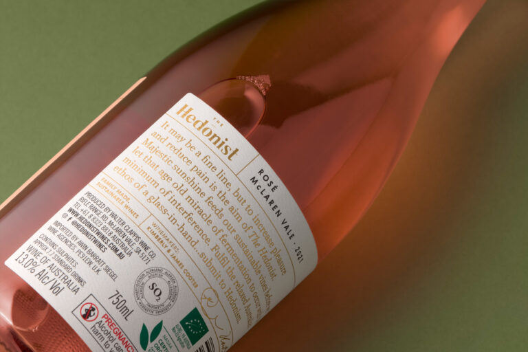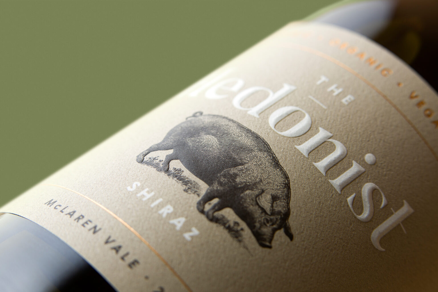 Brand identity and package refresh for ‘The Hedonist’ wines in McLaren Vale, South Australia; A family-owned winery with strong biodynamic, organic, vegan-friendly and sustainable practices and winemaking methods. The award-winning winemaking team consists of Walter Clappis, a veteran winemaker of 36 vintages, daughter, Kimberly and her partner James Cooter.