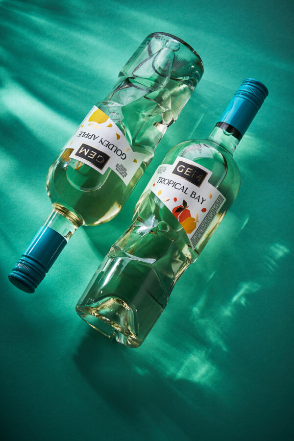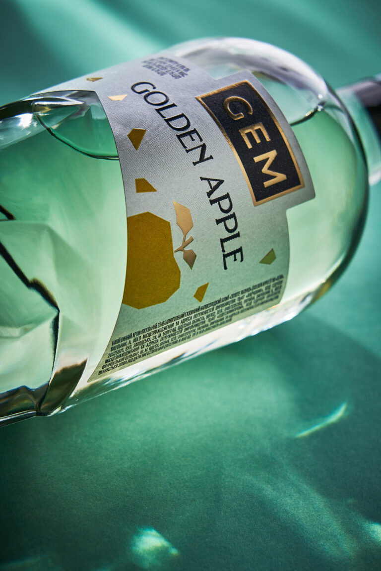 The primary task in developing the packaging design for Gem fruit wines was to create a bottle of a unique shape that would reflect the main feature of the product and its name. That is why the middle segment of the bottle has a complex multifaceted shape, which resembles the faceting of a precious stone. The label complements the irregular shape of the bottle and presents essential information about the product through stylized images of fruits, which are further highlighted through post-printing processes. Thus, thanks to the original bottle shape and bright label design, the drink instantly stands out on the shelf and attracts the attention of the consumer.