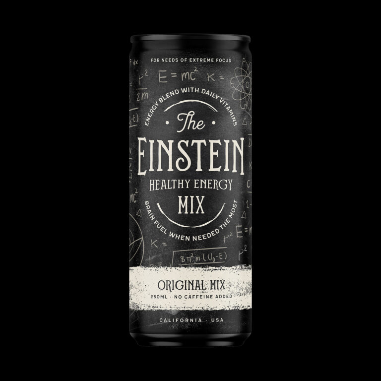 The objective was to create a intricate design that resembles the chalk boards where Albert Einstein made the biggest part of his work and classes with some color details as a twist, a visual that will be very different from what we are used to see in the market of energy drinks.