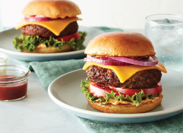 Close-up shots look good enough to eat while bold Caribbean-inspired colors help the packaging pop and communicate the balance of healthy and tasty meals. Melting cheese, juicy burgers, and delectable sauces provide easily identifiable appetite appeal. The bold elements blend well together for a strong shelf presence and unforgettable brand recognition.