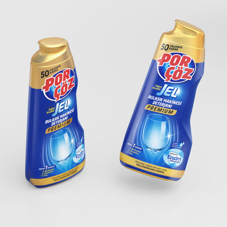 PORÇÖZ GEL Dishwasher Detergent Packaging Industrial Design (HDPE Bottle, PP Fliptop Cap) and Graphic Design (Sleeve Label)