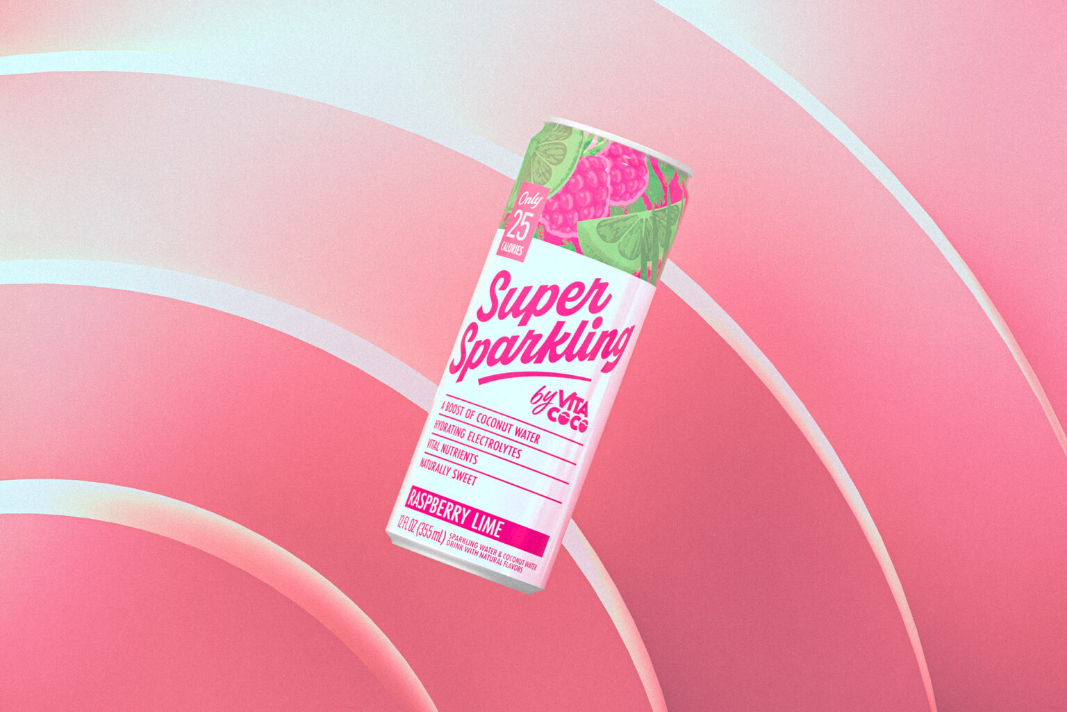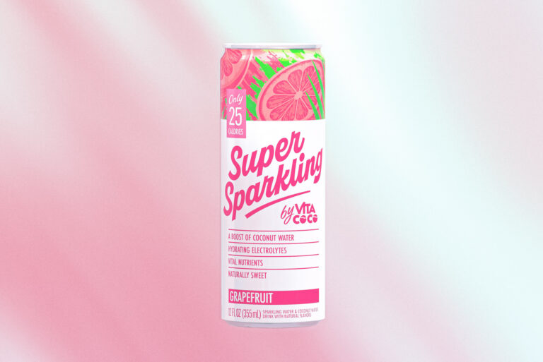 Super Sparkling is a light, bubbly drink packed with all the nutritional benefits coconut water has to offer—electrolytes, nutrients, and minerals. It is a beverage that both refreshes your tastebuds and replenishes your body. To bring these dual qualities to life, Nessen Co’s can design is modern, orderly, and clear like many other functional beverages, but also leverages vibrant, mouthwatering illustrations and a lively script that doesn’t take itself too seriously.