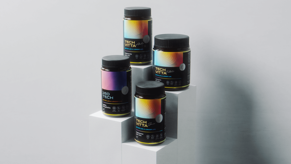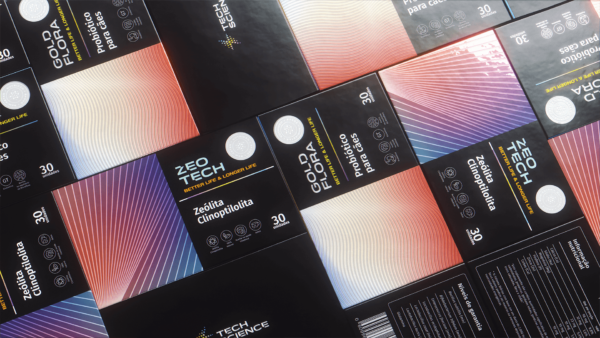 DNA is a molecule present in the nucleus of the cells of all living beings and carries all the genetic information of an organism. Based on molecular geometry, we are inspired by the fact that when a molecule is formed, the atoms are positioned in different ways, so that the spatial arrangement is more stable. Therefore, the compounds have different geometries that, applied to the packaging and labels of the various products, create an absolutely different graphic format for the brand; a strongly identifying design, which evokes the technology of the products and, at the same time, the innovative and dynamic character of Tech Science.