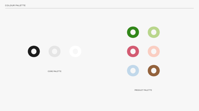 For the packaging design, a bold circular san-serif typeface was chosen to give stand out against the muted palette with a hit of accent colours and give a sense of play and simplicity. Each ingredient is represented visually on the pack with a simplified, flat style illustration, free from detailed elements helping mirror the purity of the product.