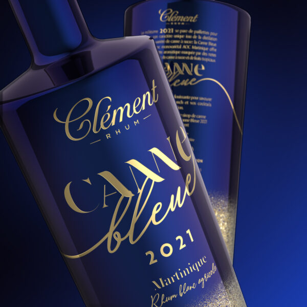 Since 2014, we have accompanied Clément Canne Bleue every year on the packaging design of its vintage. This year, the edition is sparkling and summery to contrast with the global gloom! The aesthetics of this vintage is reminiscent of the beaches of Martinique on a summer night. The bottle is covered with a cobalt blue sleeve with a tactile glitter finish.