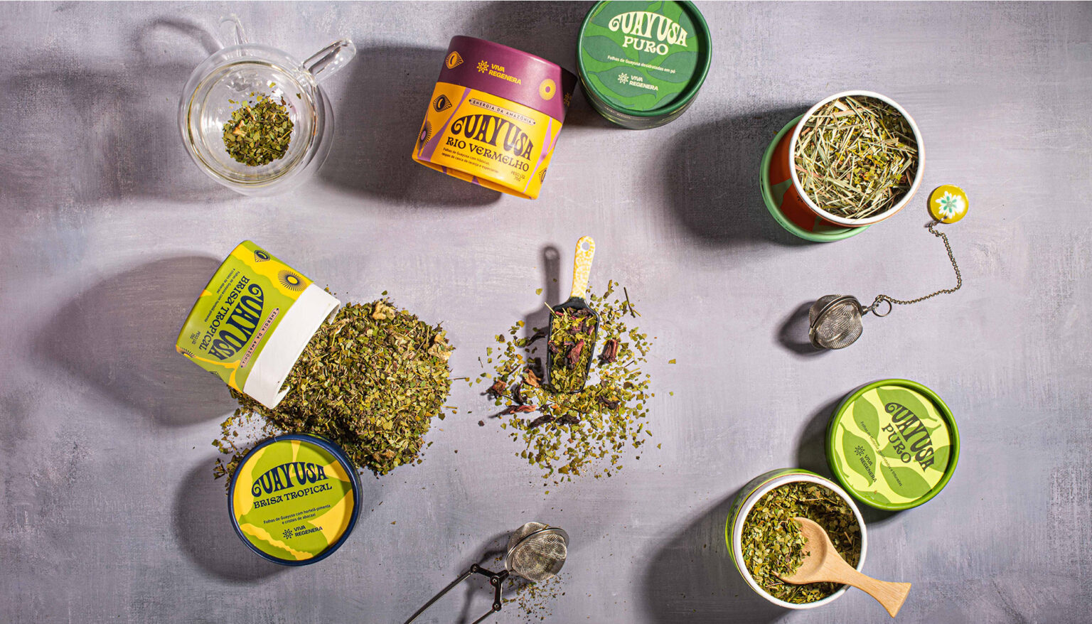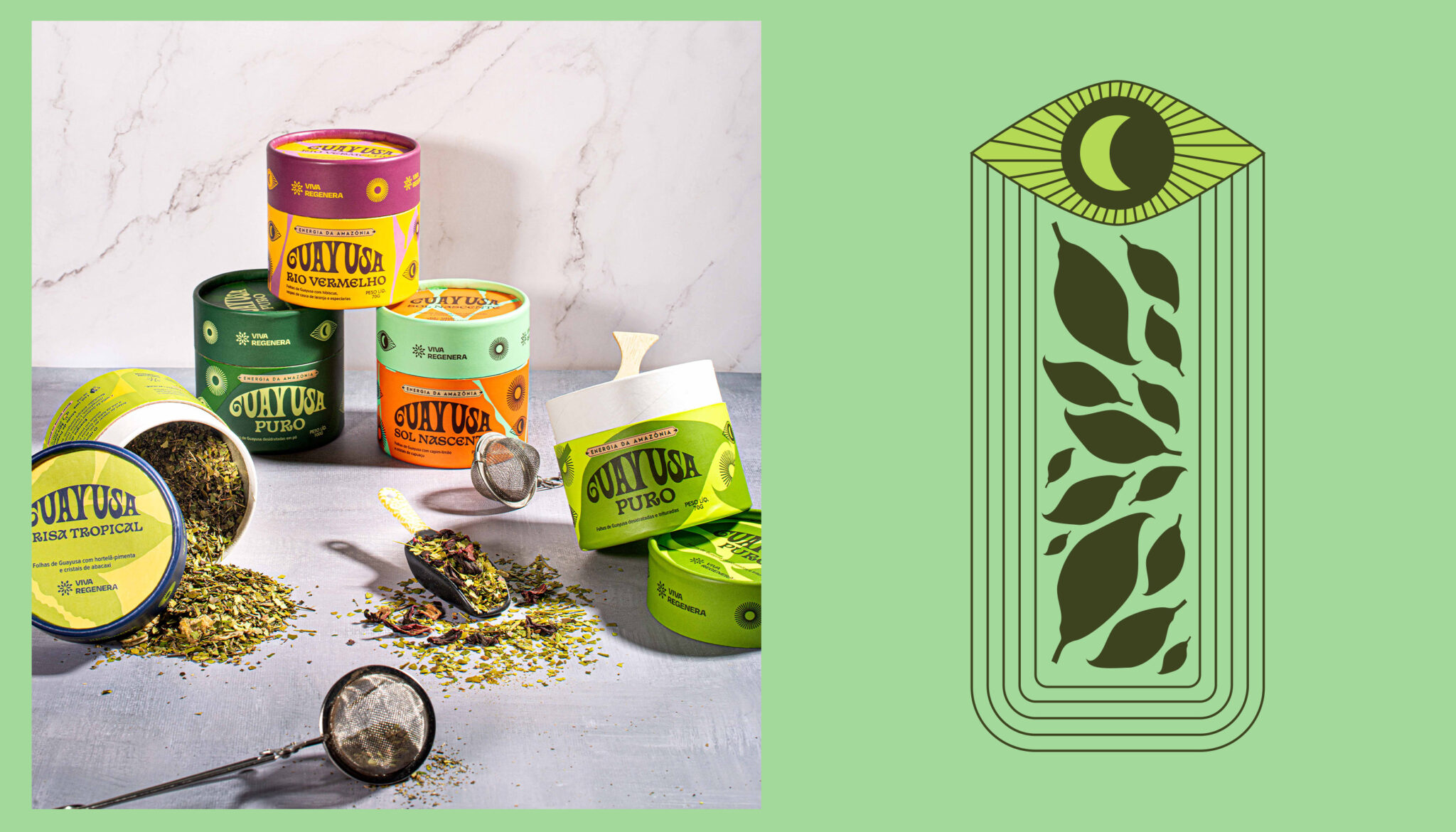 Guayusa, a leaf native to the Amazon rainforest, is high in caffeine and is a natural source of energy. During the research to create the graphic project, we discovered that tea from the Guayusa’s leaf was used by indigenous peoples at dawn, during dream interpretation rituals.