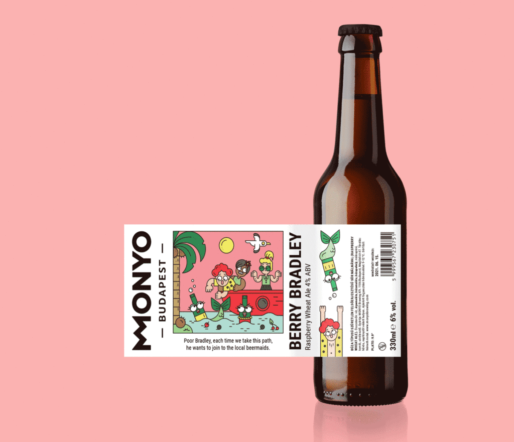 Limited edition of three delicious beers for the summertime. The labels are inspired by the great graphic artist, Glen Baxter, who is a master of funny visual storytelling by his colorful pencil drawings. The three labels for this series represent the continuous story of three good friends’ crazy adventures. On their casual vacation trip they head to a wonderful island. During the journey, they have to master their obsessions, but that is not easy: Breadly is mesmerised by the Beermaids, Bella is the queen of the wild bananas, and Grace can’t help herself if Mr. Guava is around. Enjoy their trip whether the weather is cold or hot.