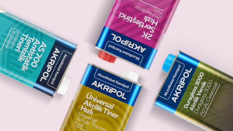We attracted attention on the shelves with the packaging designs we made for the product collection of the Akripol brand, which serves in the auto repair paint industry. We created a colorful and dynamic series with modern and striking designs for the brand.
