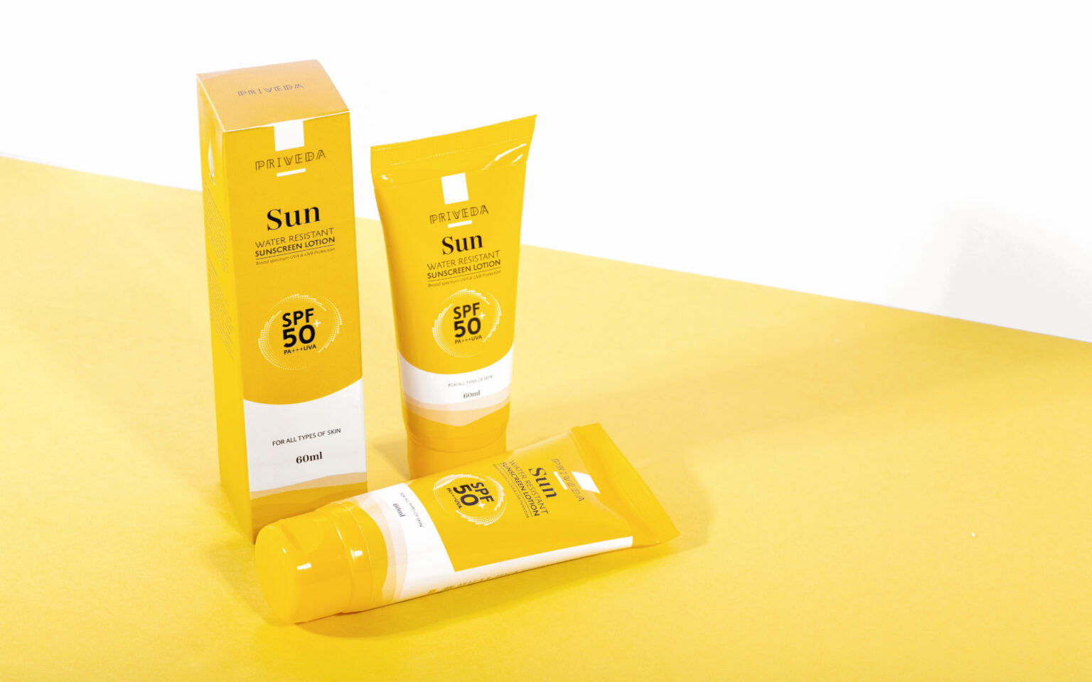 Priveda is an Indo-Korean personal care brand based in India. Its mission is to deliver safe, natural, and high-quality products to the customers for a better & healthier tomorrow. This packaging design was done for their new SPF 50+ sunscreen lotion product with PA+++UVA.