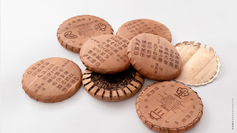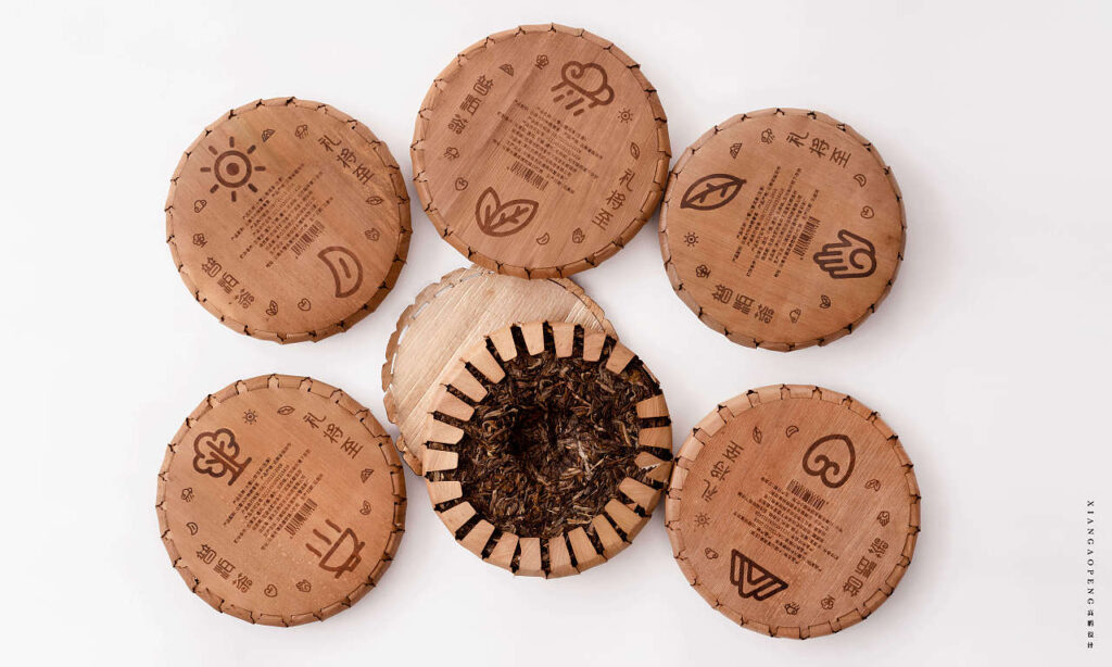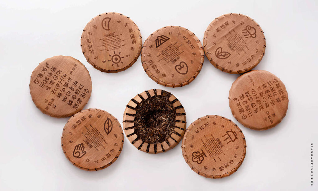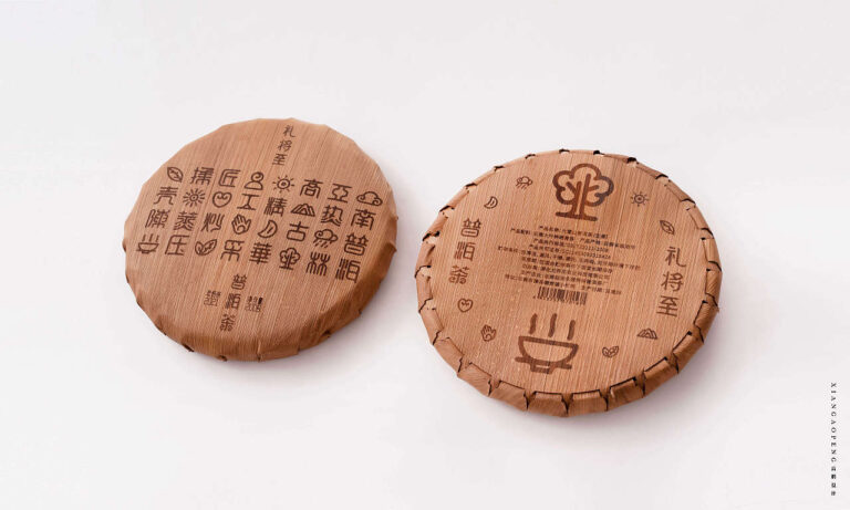 Utilizing the characteristics of Chinese ideographic hieroglyphs, symbolizing words and graphics representing origin, nature, and craftsmanship can be used as a whole with brand and product conceptual discourse, or presented separately. The packaging material is the natural bamboo shoot shell that is most conducive to the fermentation of Pu’er tea. It breaks the traditional ink printing and adopts the carbonization carving process (reflecting the characteristics of charcoal roasting) to highlight the advantages of the product.
