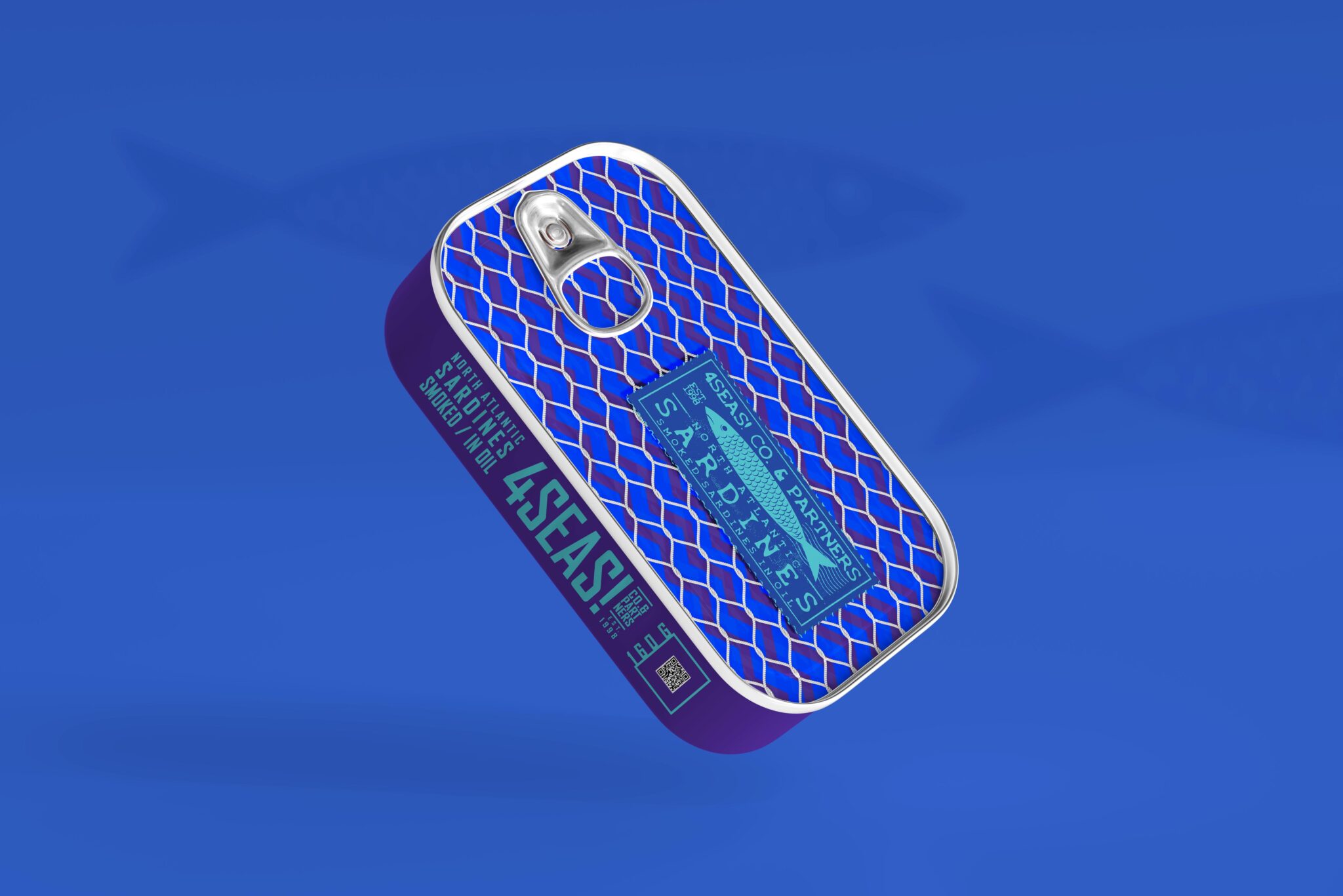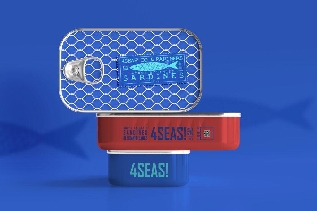 While exploring the retro labels, packaging and stamps of the market we decided to create a stamp form design to underline the historical and iconic way of identity. The illustrations of a sardine fish were done in a simple way to express the direct form of the fish which is widely recognizable. By adding additional info and company name on the “stamp” we created a special and smart sign mark for different kinds of products by 4SEAS! The second element of the design is a fishnet pattern which is drawn by hand and is a strong brand identity element for canned productions of the company. Hand-drawn wave symbols, graphics and color solutions make the design of backgrounds full-fledged.