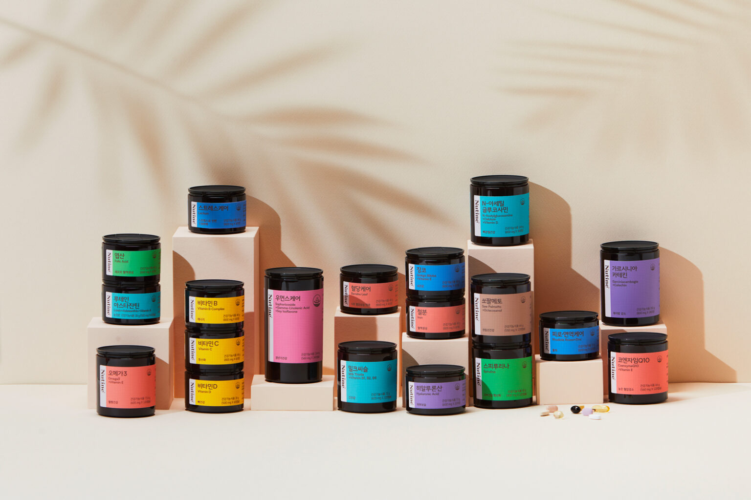 When we make new containers, a point that we focus is to save customer’s space. The result of focus is a cylinder-shaped container that can store products by stacking them vertically. In order to stably stack containers, the shapes of the top and bottom of the container are designed to fit together. Nutine’s containers take up minimal space and it looks neat when stacking it. It also has a one-touch cap which role is to maintain the stability, instead of the twisted lid. This is convenient for customer in use of ease. According to the daily intake of each product, the size of the case has three different types in order to classification. We emphasize the fact that adapting to stack up system does not only mean saving space, but also signify piling health up.