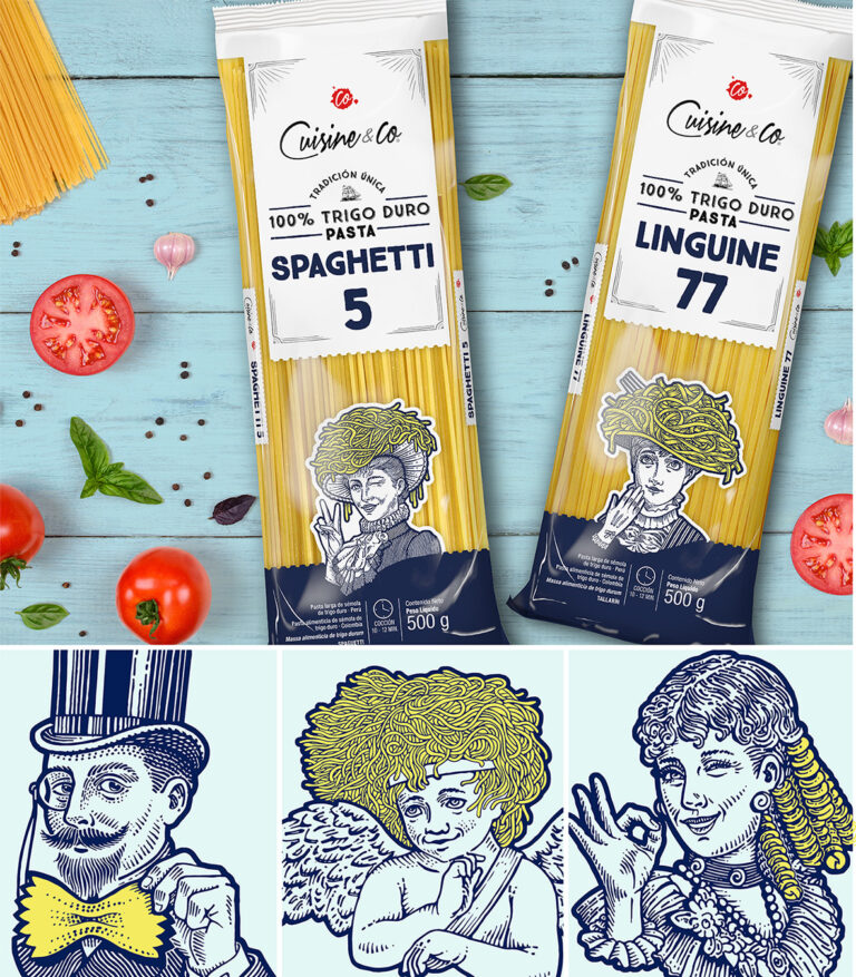 PASTAS TRADICIÓN / Cuisine&co Posted on April 7, 2022September 29, 2022 Food Pasta 58682270 Submitted By: Doblegiro Cuisine&Co characters show a unique tradition on the pasta line, a particular illustration with the interaction of product and characters gives life to this design.