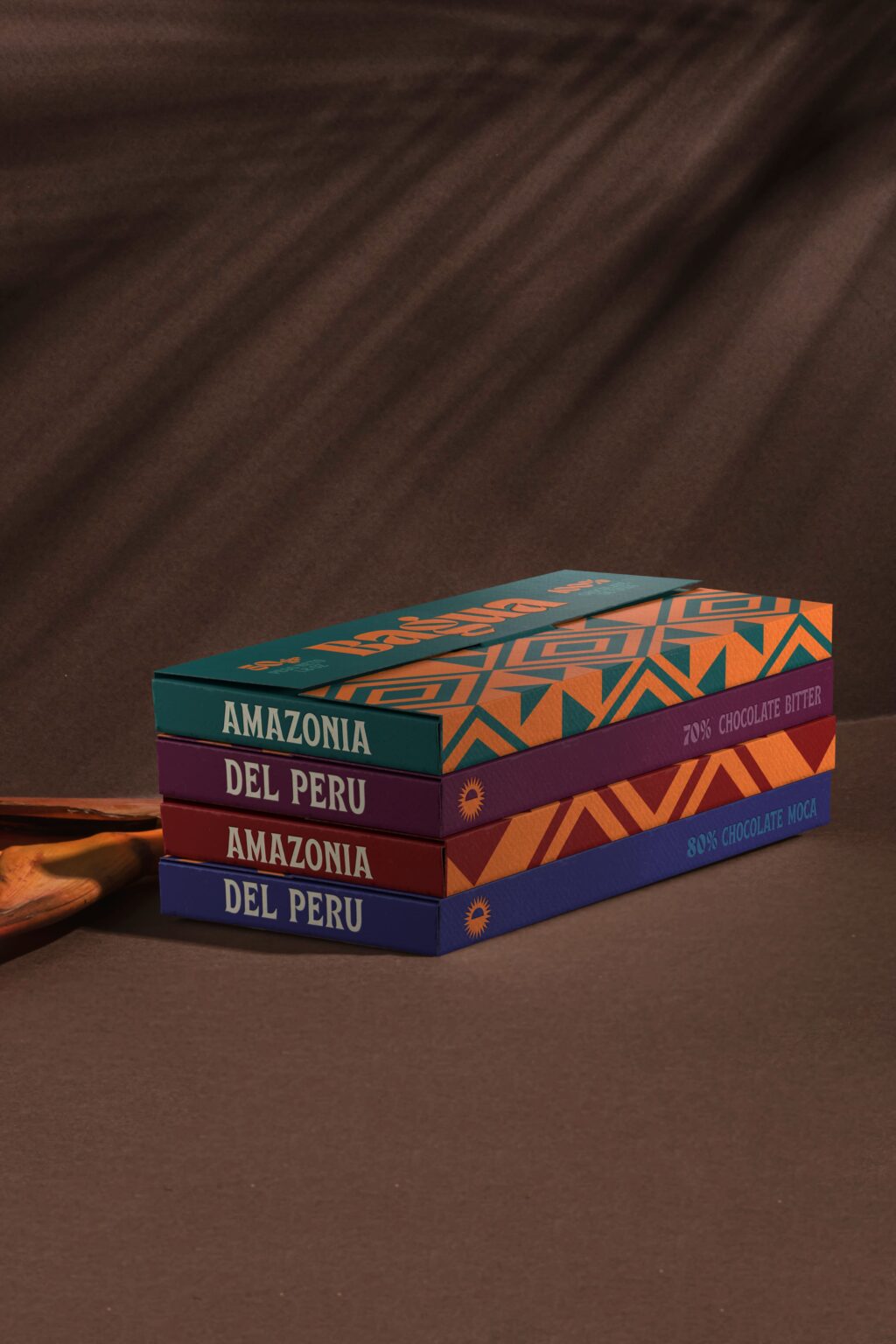 The packaging line was designed with a system of plots built from triangles and rhombuses that resemble Awajún art, thus representing part of the members of the cooperative and the region. A sun icon was added, as Bagua is a region characterized by its high temperatures throughout the year. We used a typography with many curves, which generates contrast with the plot, and which adds modern and friendly shapes to the design.