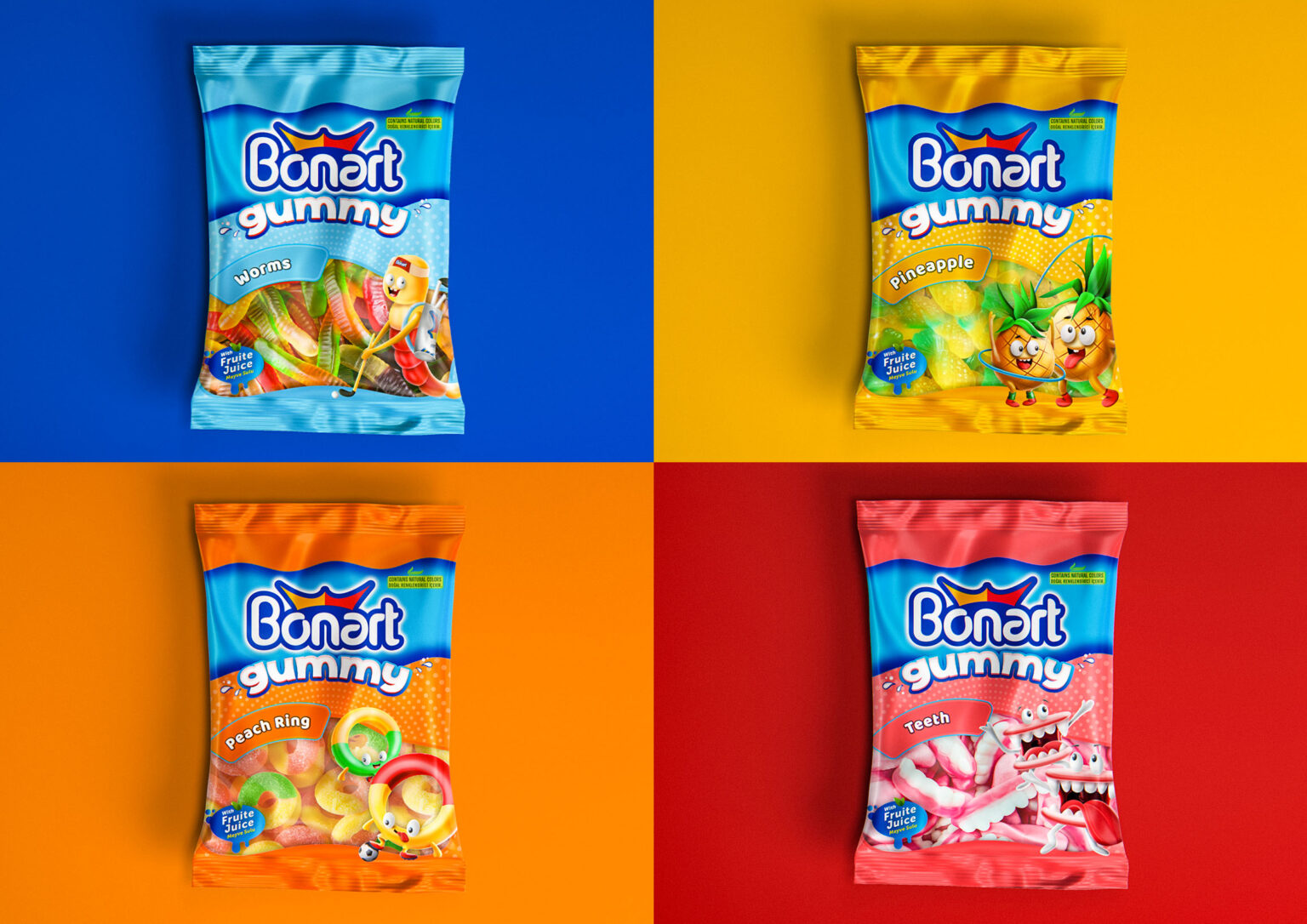Bonart Gummy Posted on May 27, 2022May 27, 2022 Food Snacks 49531090 Submitted By: keyiflifikirler Beylerbeyi, Üsküdar/İstanbul, Turkey Our Bonart Gummy designs with fun character designs and packages consisting of a total of 10 colorful variants. In the project, we designed fun characters specific to products and brands.