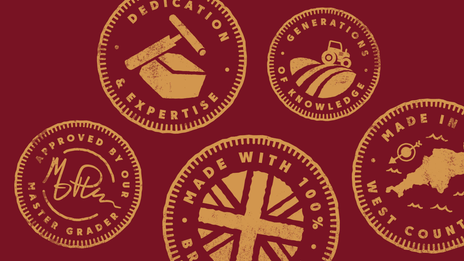- The carefully crafted and stamp-like ‘makers’ marks’ bring through quality cues. They tell the rich story behind the product, showing the time, care and attention that goes into every cheese block.