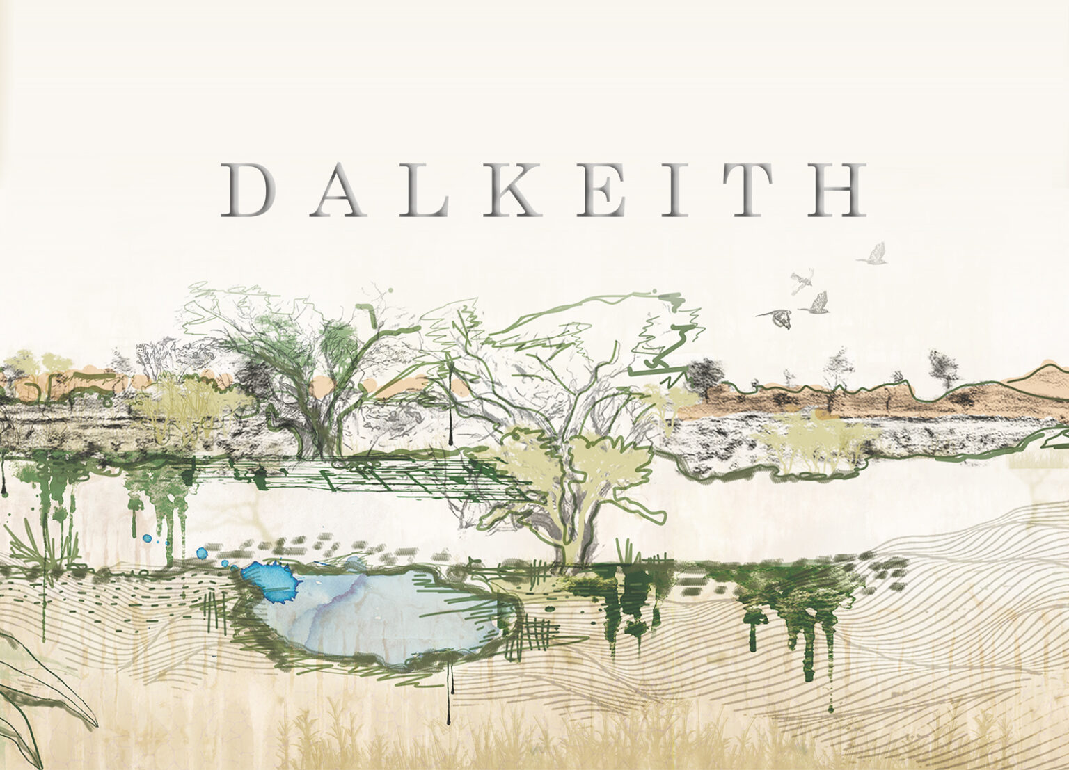 The execution highlights the contrasts and extremes of Dalkeith: soft watery tones and rough linework, dryness and abundance, new-age wines from aged vines.
