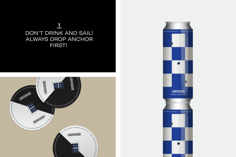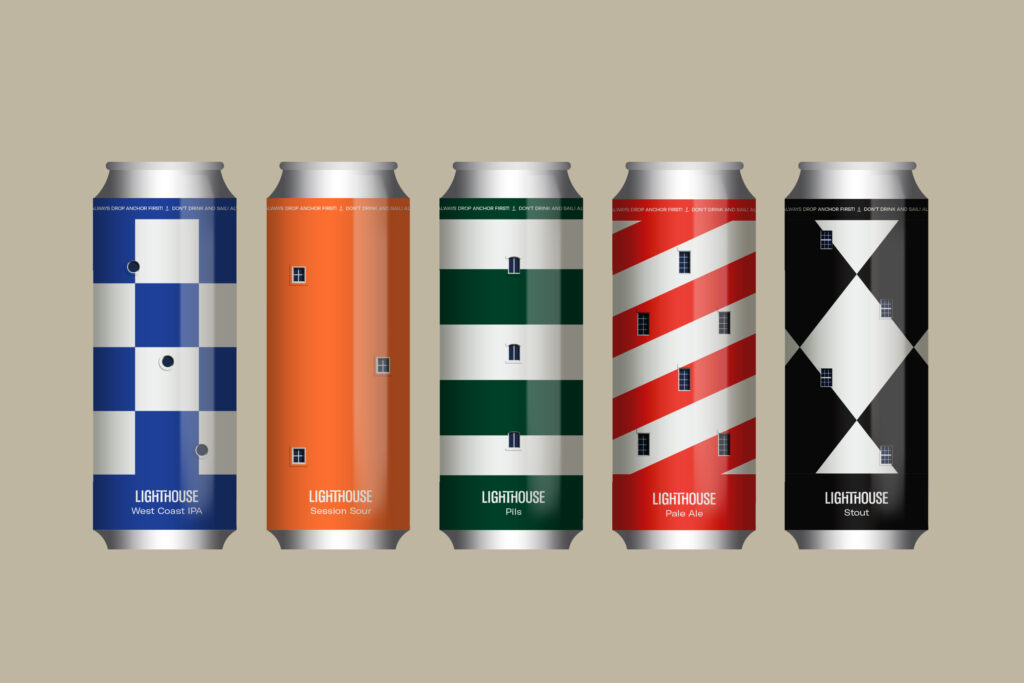 The packaging features famous lighthouses from around the globe illustrated in a minimal way.