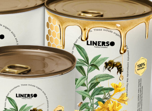 And most importantly, at first glance, not only should it be visually appealing, but it should be clear that this product is honey, the use of large bee elements, the use of hexagonal beehives next to the label, flowers for more communication. The customer is used with being organic and conveying a good feeling to the viewer.