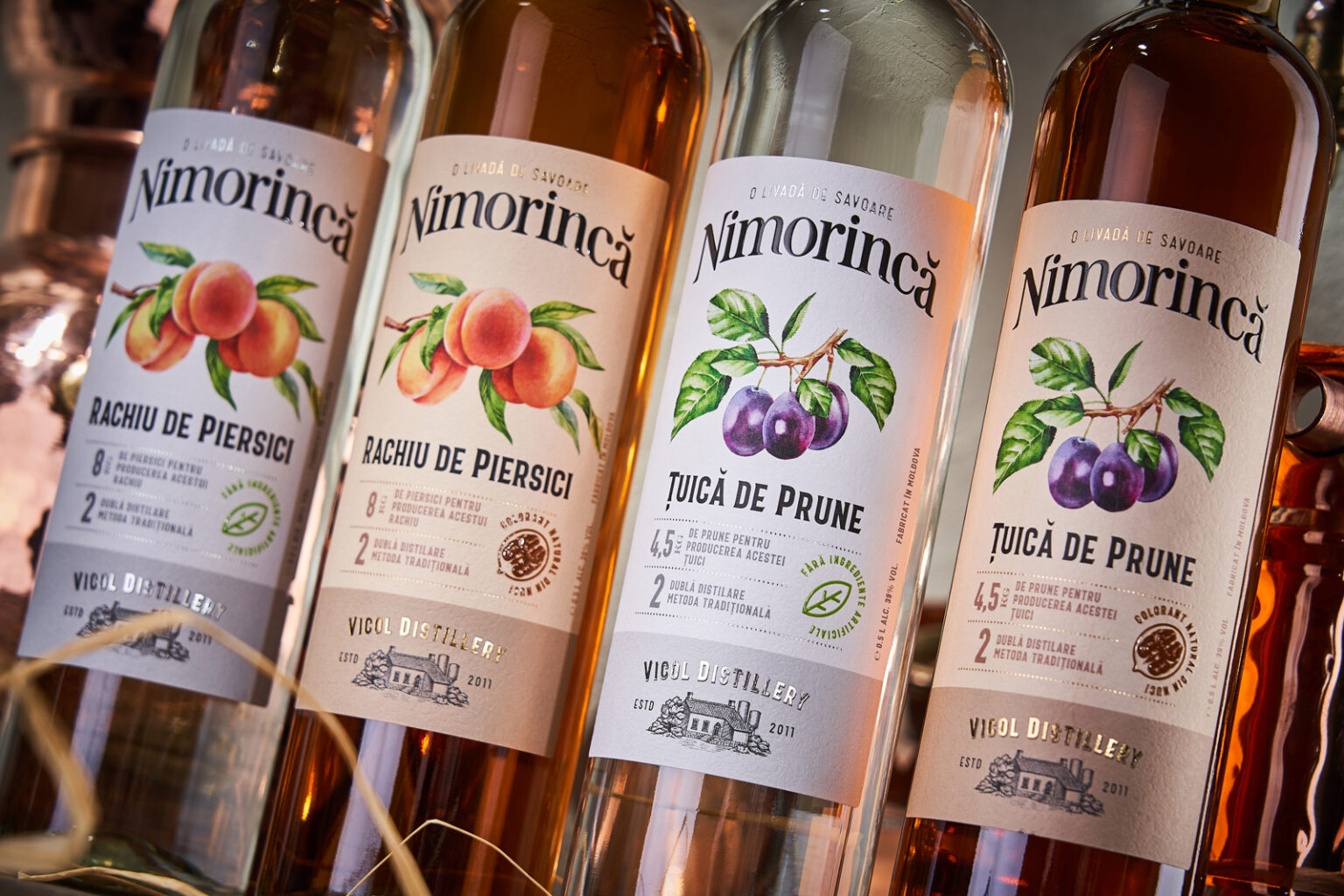 Nimorinca is one of the most famous Moldavian brands associated with the production of fruit distillates. A distinctive feature of Vicol Distillery, which owns this trademark, is the full production cycle: from growing fruits in their own gardens to bottling the final product, everything happens under strict control within the enterprise itself. And for many years on the market, the Nimorinca brand, named after the village of Nimoreni, has attracted the attention of a rather narrow, but very loyal audience that appreciates the quality and scrupulous approach of the manufacturer. However, over time, the need for a more detailed and serious positioning of the brand became obvious, which now included several product lines at once from different price categories. This is exactly what our studio did as part of a large-scale project of redesigning and rebranding Nimorinca distillates.