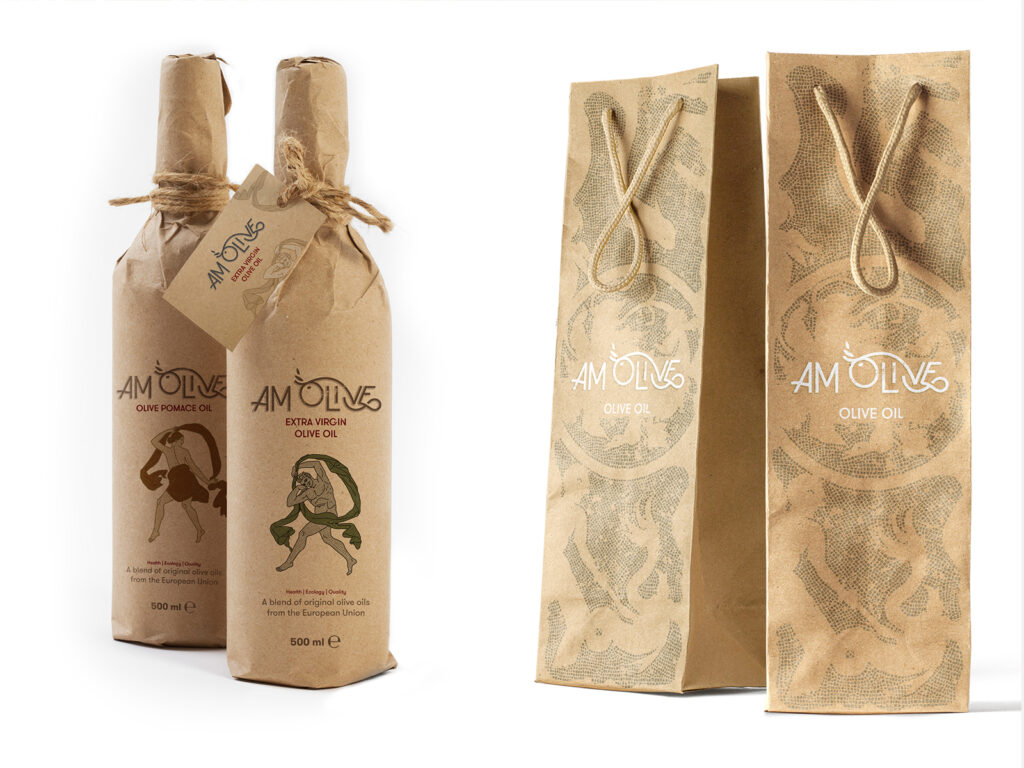 A new brand of olive oil from Italy. The product is produced for export, so it is important to show the cultural characteristics of the region. The packaging concept is based on mosaics and figures of people drawn in the ancient Roman style, inspired by the rich historical and architectural culture of Italy.