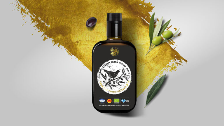 The simplicity of the illustration creates an eye-catching, attractive and traditional form on the product label. It was the most appropriate way to point that Organic Cretan Extra Virgin Olive Oil P.D.O.is a high-quality product of organic farming.