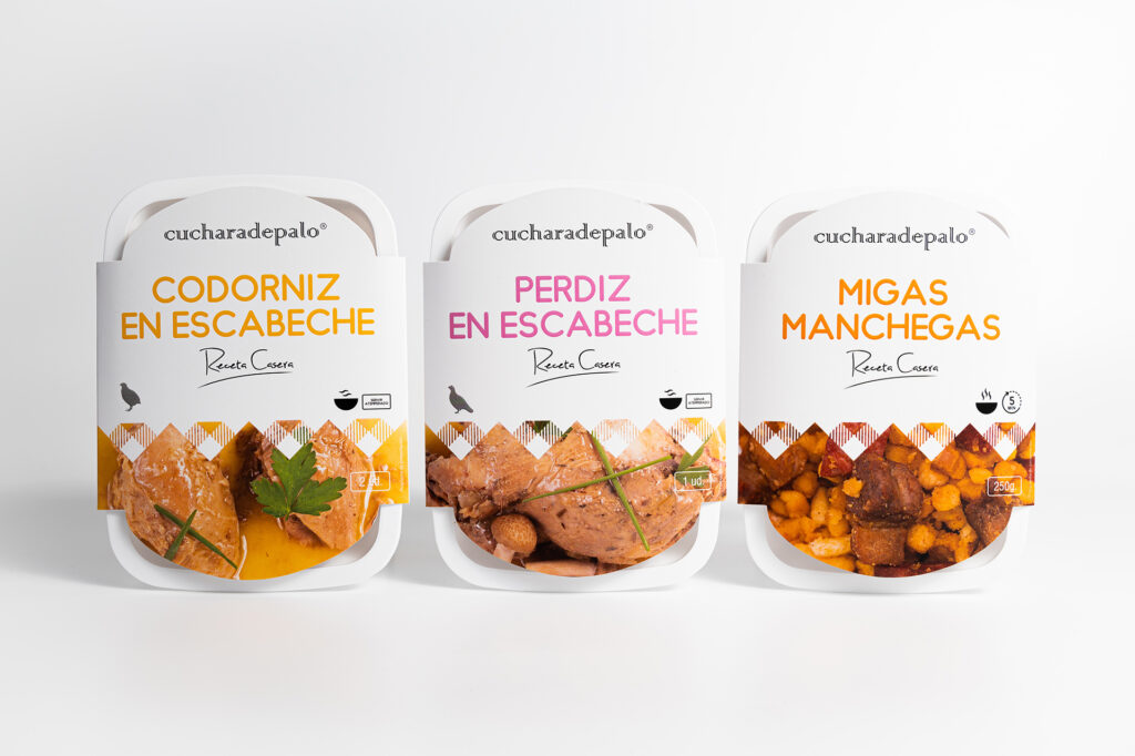 A brand that brings you closer to the culinary tradition of the Montes de Toledo. An evocative tour of its surroundings and its products. Ready-to-taste recipes that taste like the countryside, rosemary, thyme and rockrose. The identity of the part of the classic Vichy painting. A traditional motif brought to our days, which links perfectly with the values of the brand. A resistant and slippery packaging that makes it functional in the kitchen or in daily life.