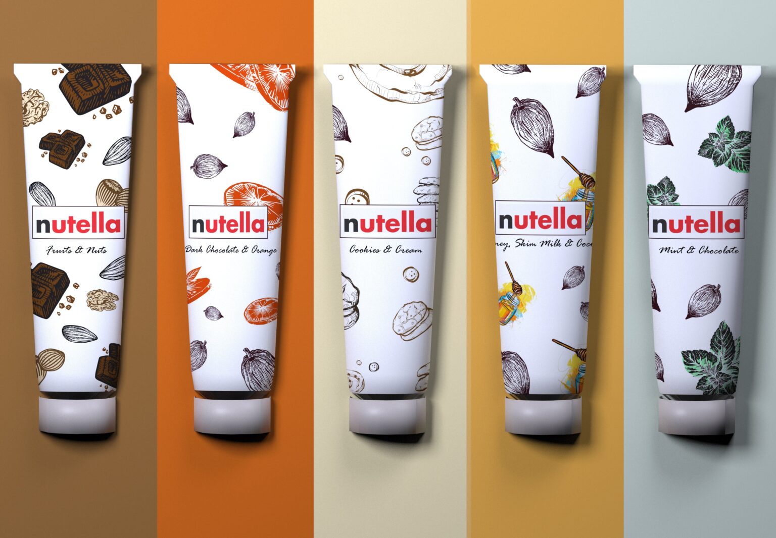 This is a conceptual packaging for a new range of healthy flavored Nutella for kids and young adults. Nutella is a brand of sweetened hazelnut cocoa spread that is famous for its authentic hazelnut and cocoa taste, made even more irresistible by its unique creaminess. Nutella was termed The World’s Favorite ‘Breakfast Spread’. The flavor of Nutella hasn’t changed since the brand got recognition. The flavors can be experimented with keeping the market requirements and trends in mind.
