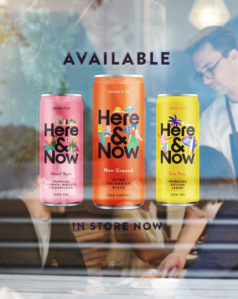 Currently there are three Here&Now products on sale: Iced Coffee Black – New Ground, Iced Coffee Oat Latte – Social Call and Iced Tea Rosehip – Usual Spot. Two further Iced Teas will be released this summer.