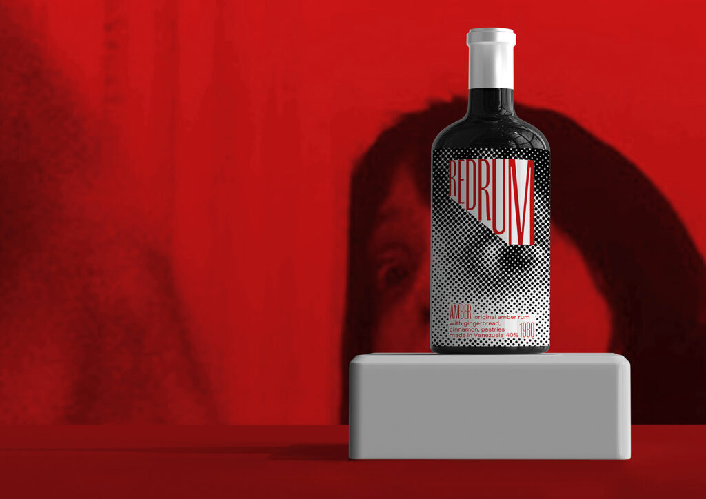 The package design contains recognizable images of the favorite films “Psycho”, “Rosemary’s Baby” and “The Shining”. The name of the brand is the famous expression from the movie “The Shining” – redroom, combined with rum.