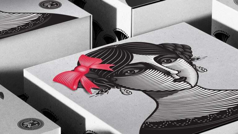 All the bows used, are from recycled material. The bows are from paper scraps, taken from the original packaging when cut for production. Instead of throwing away the leftover papers, we are reusing them as a final touch. The packaging only uses black ink and the bows red pantone color, resulting in fewer use of ink.