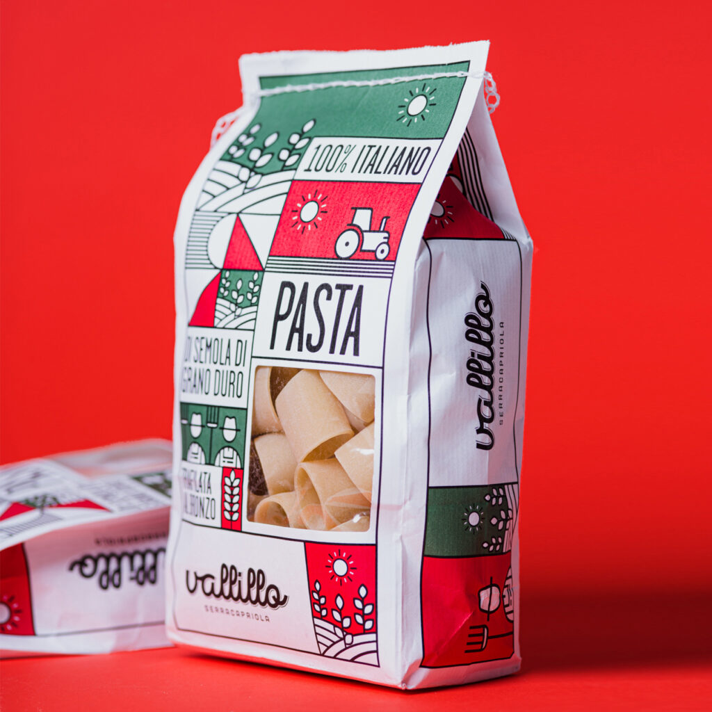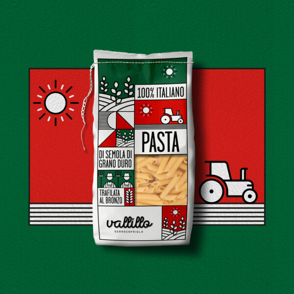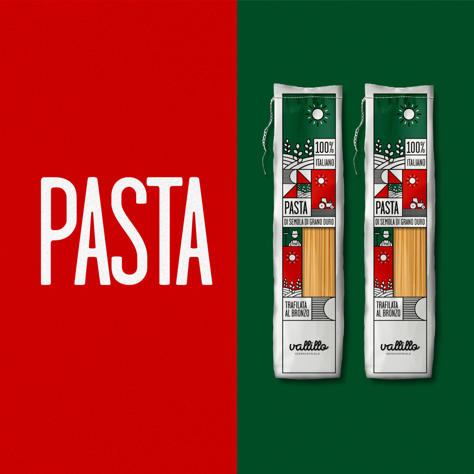 The system pack tells, through the graphics language, the authenticity, the values, and the supply chain of the Vallillo agricultural world. The simplification of the sign, together with the use of colors that refer to the Tricolor, convey to a conscious consumer the excellence of Vallillo products.