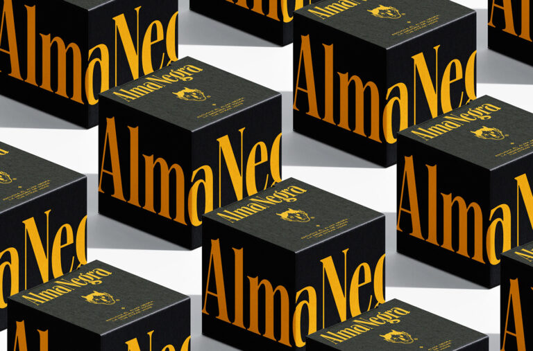 Alma Negra is a brand focused on rings with rock & roll style and mysticism, a brand with clients demanding adventure and new experiences, the brand is inspired by a character born in the Mexican Catholic walks or pilgrimages, “El Viejo de la Danza” this character is the representation of sin, a demon or the devil and is strategically simulating the persecution of believers, giving a classic scene of the monster chasing the angel. The typeface is a classic serif with gothic details, a typeface that can be found on a gargoyle, in an old forgotten monastery, or on the Ouija board.