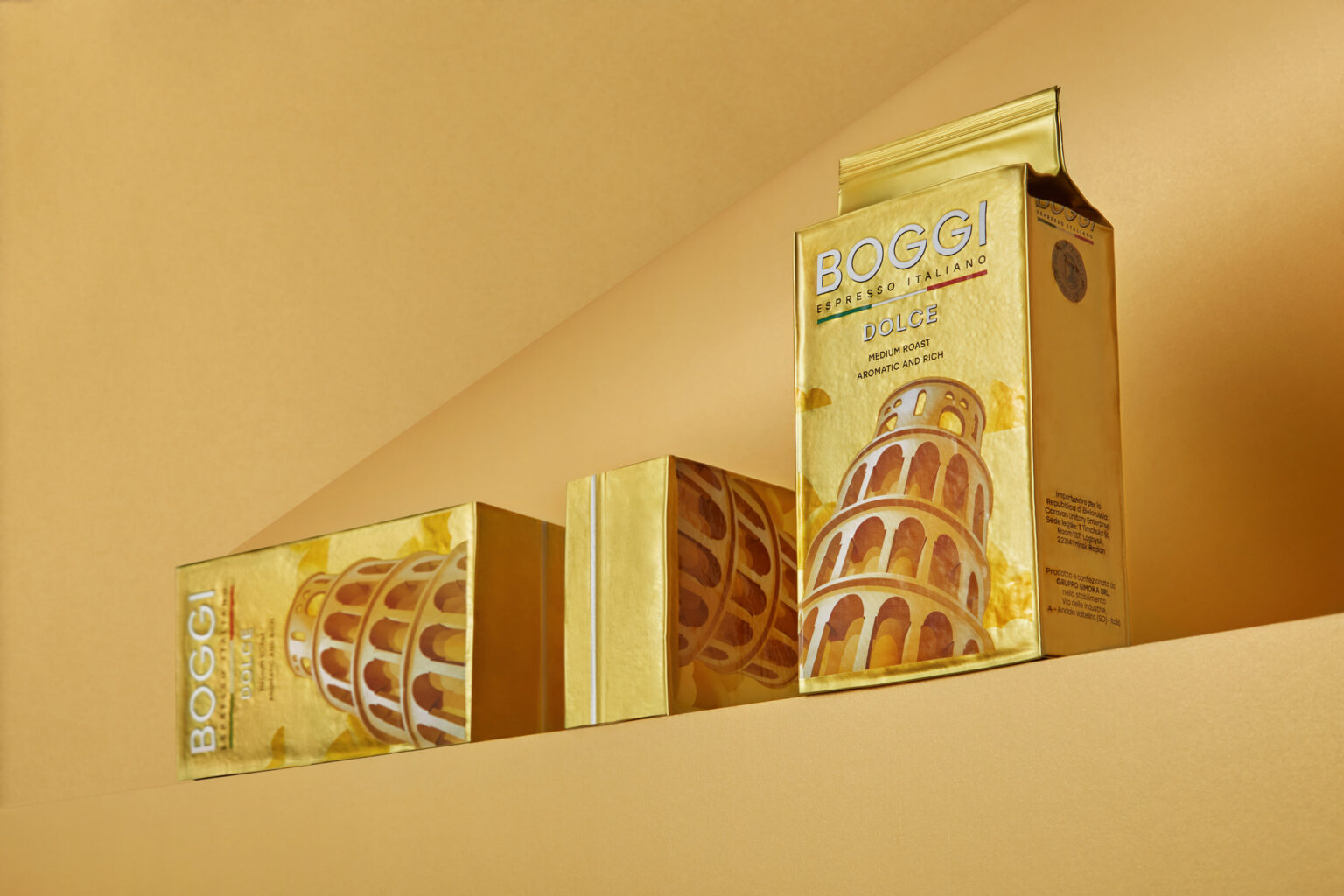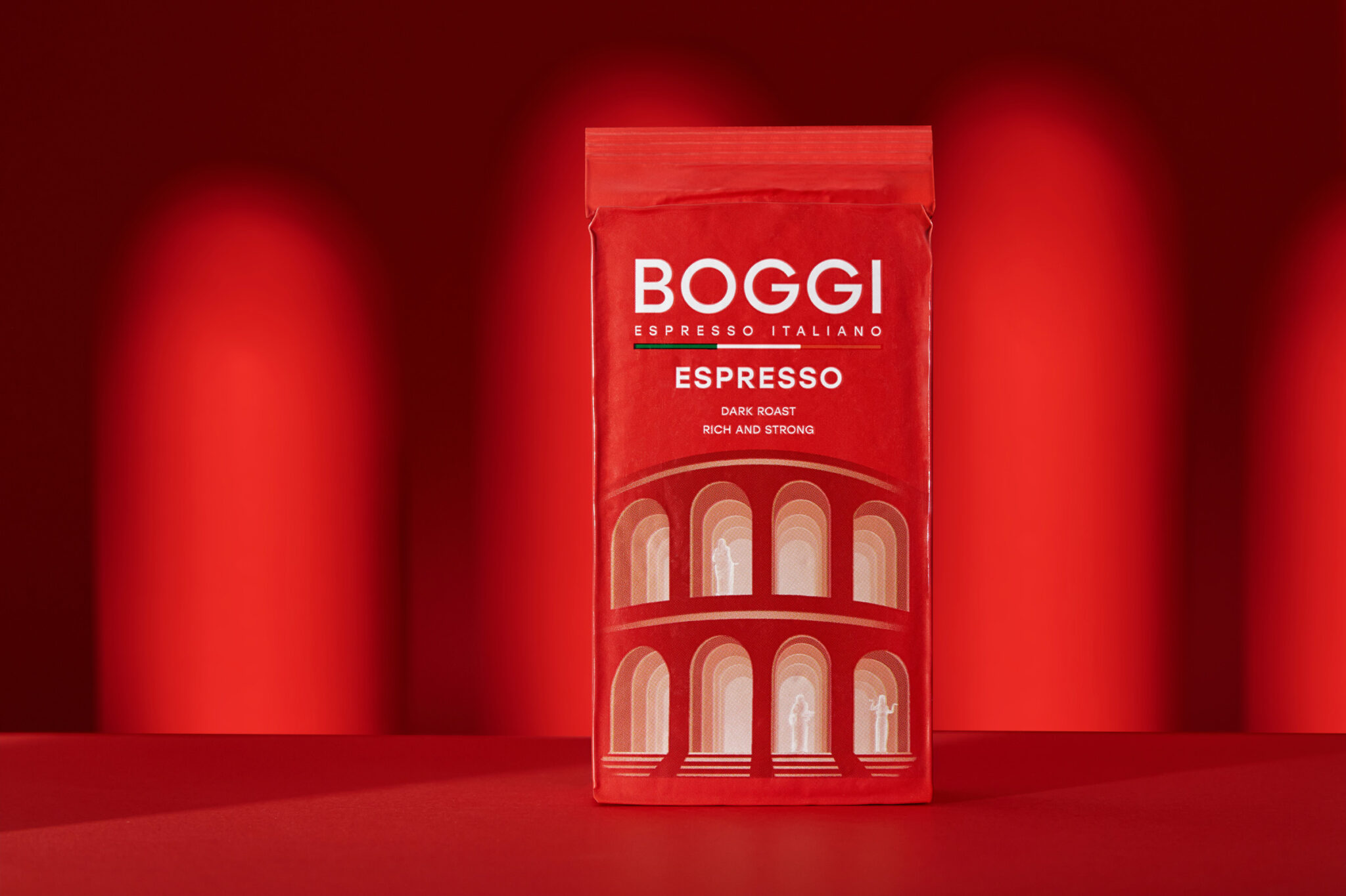 Boggi is an Italian coffee produced by Boggi S.L.A., Andalo Valtellino. The product is intended for worldwide distribution. Therefore, we had to develop a logo and package design that would make the brand stand out and tell about its origins.