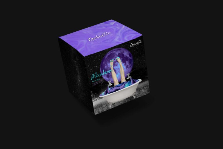 Galactic Bath Bombs merges the imagery of faraway galaxies with the language of bath bombs through playfully collaged imagery. There’s a strong and consistent foundational system applied to the brand, yet it’s s flexible enough to host visual variety from scent to scent. This packaging project keeps things dynamic, interesting, bold, and eye-catching.