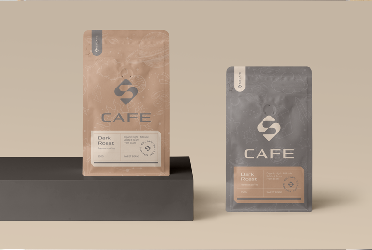 Criação de marca e desgn de embalagens para a S3 Cafe, empresa árabe que junta o sabor incrível do café com os mistérios do espaço.