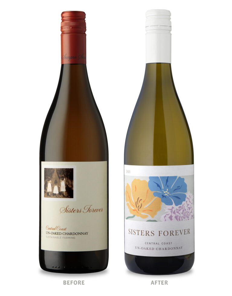 Donati Family Vineyard came to CF Napa, the original designers of their Sisters Forever packaging 10 years prior, to refresh the brand. The packaging needed to transition to a more modern expression to represent the continuity of family and appeal to a younger, Millennial demographic.