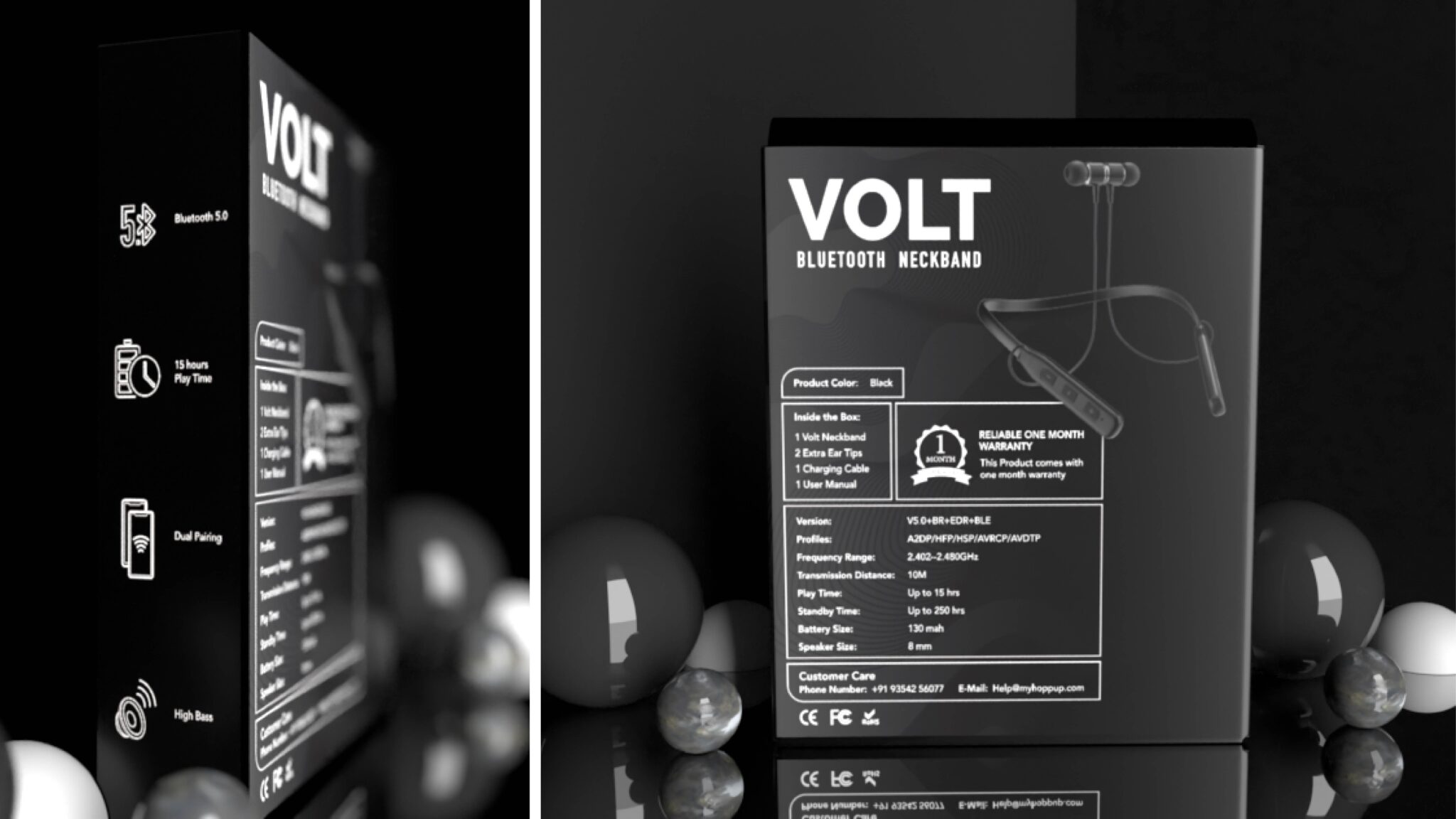 The design equation for this particular packaging was to keep it simple yet attractive because of the target market. Nothing too fancy or too hip, minimalism was the right path to go for this product. The concentric wavy lines connote the vibrations produced by this amazing neckband.