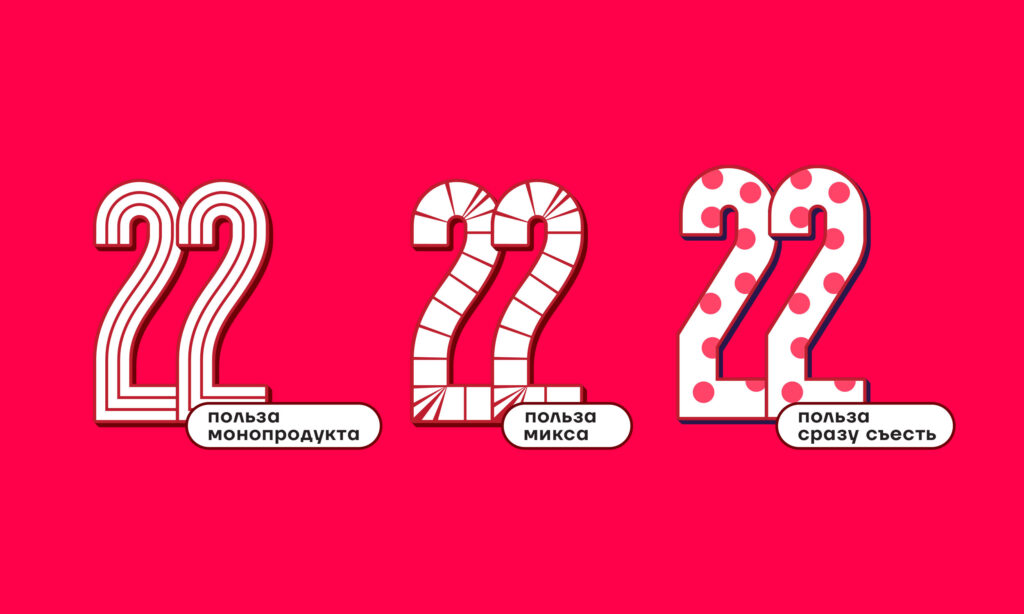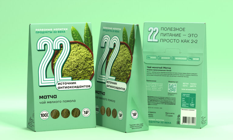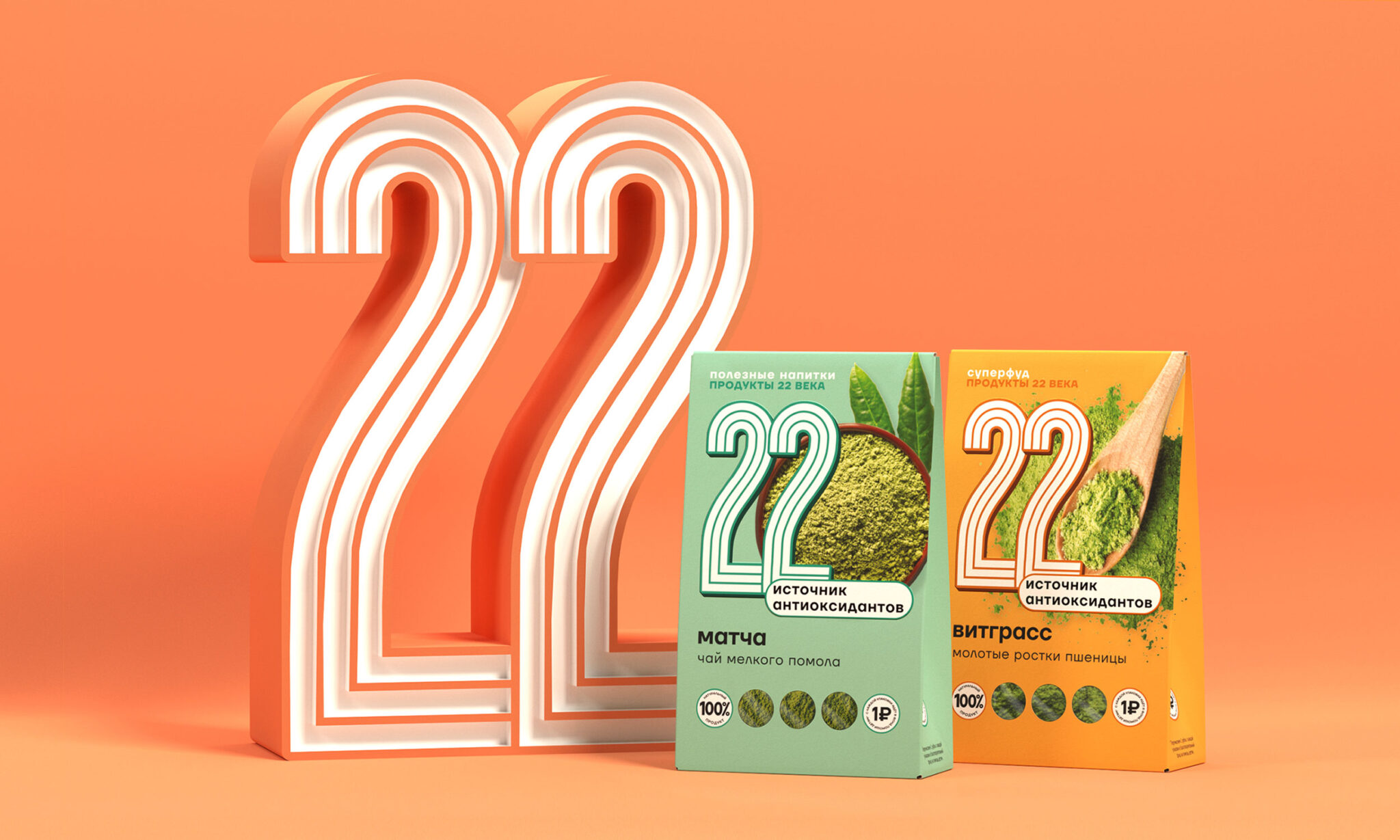 - Product lines have been highlighted with designations on the packaging and unique patterns in the logo “22”. At the same time, the pattern for the product line stays the same and the colors of the pattern match the color of the packaging background.