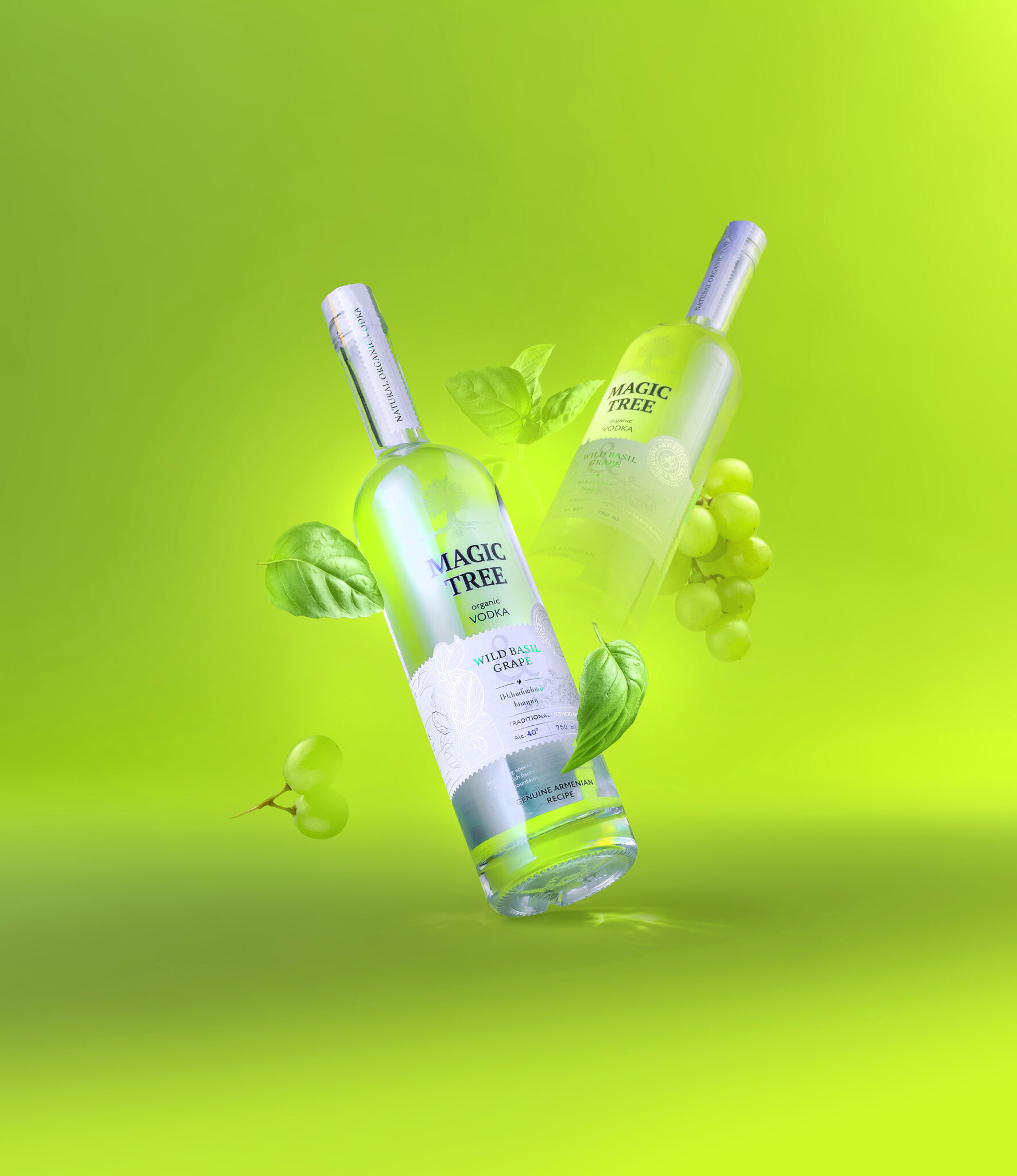 We have developed a premium brand that emphasizes the natural basis of organic vodka. Wild basil and grapes are a premium blend of the Magic Tree brand, which quickly became popular in the HoReCa segment. Thanks to basil extract and a natural base from grape distillate, vodka has an exceptionally mild taste. In fact, it cannot even be called vodka, since vodka is a product made from simpler and less expensive raw materials.