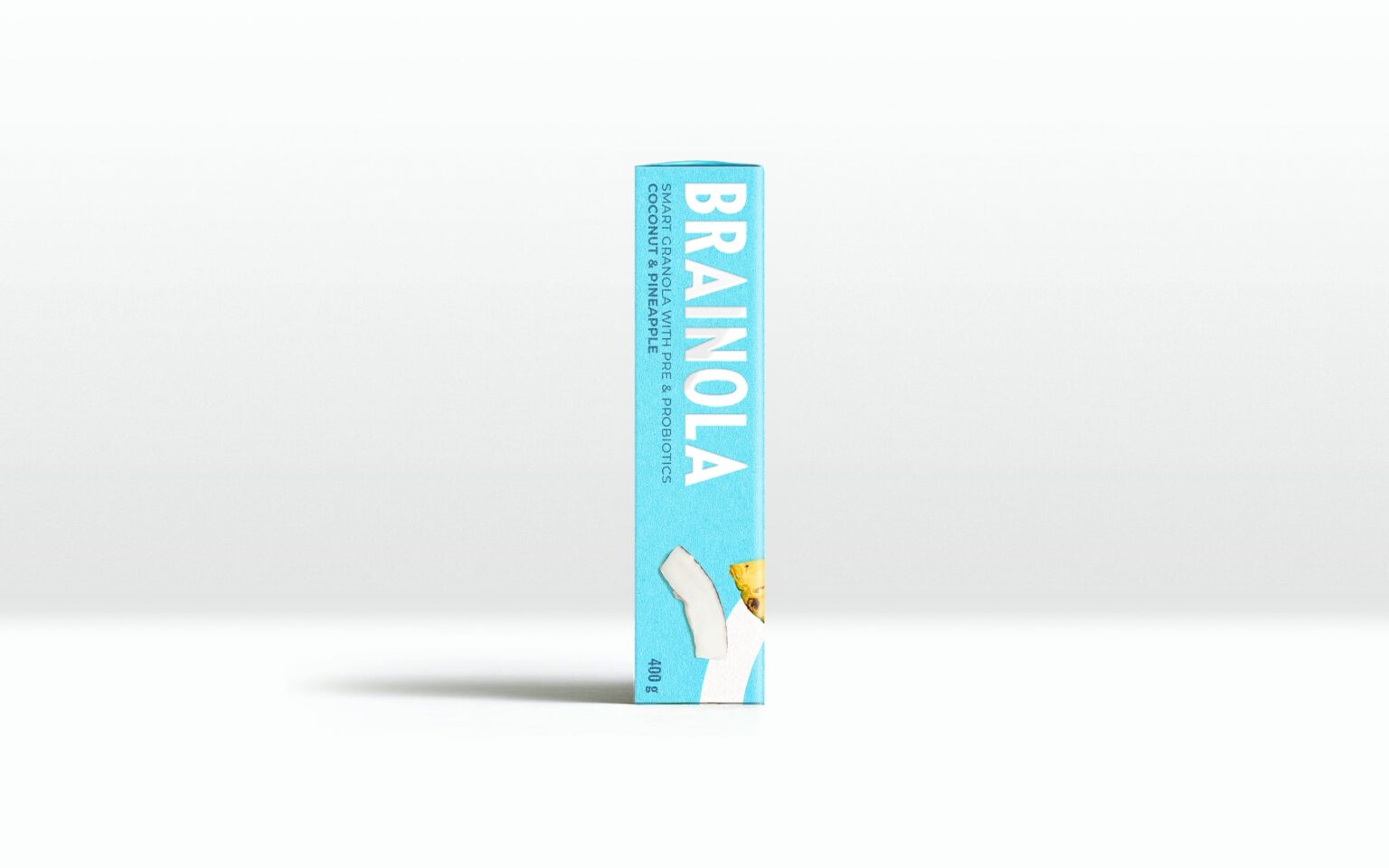 Brand concept, naming, slogan, logo design, branding and packaging design for BRAINOLA.