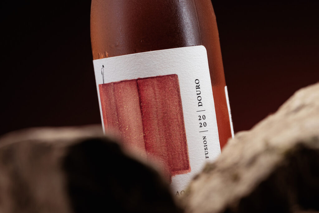 Fusion pays homage to the rock, the schist and its silica, the hue of the fusion between the red must and the white grape skin. The color, the hue of the wine inside, and the vertical stripes remind us of the warm schist soil.